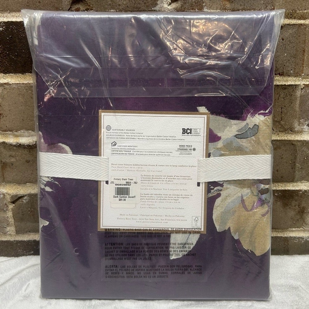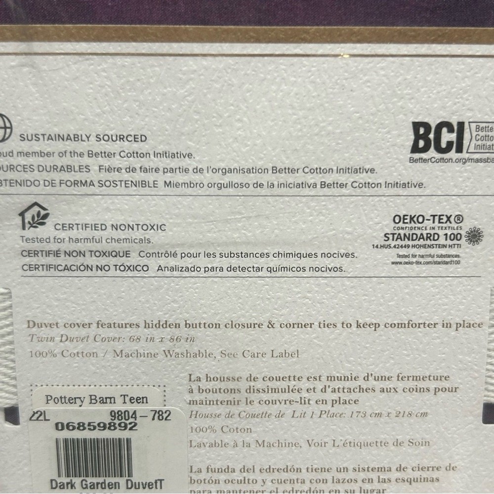 <![CDATA[<div>Brand new in packaging! NEW Pottery Barn Teen Dark Garden Duvet Cover Purple Floral Print Bedding Size Twin measures 68" x 86" 100% Cotton Duvet cover features hidden button closure and corner ties to keep comforter in place. Comes from a clean and smoke free home!