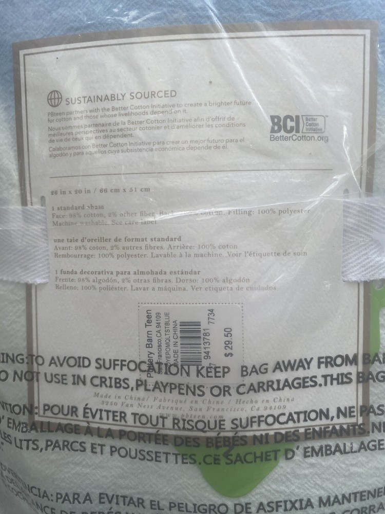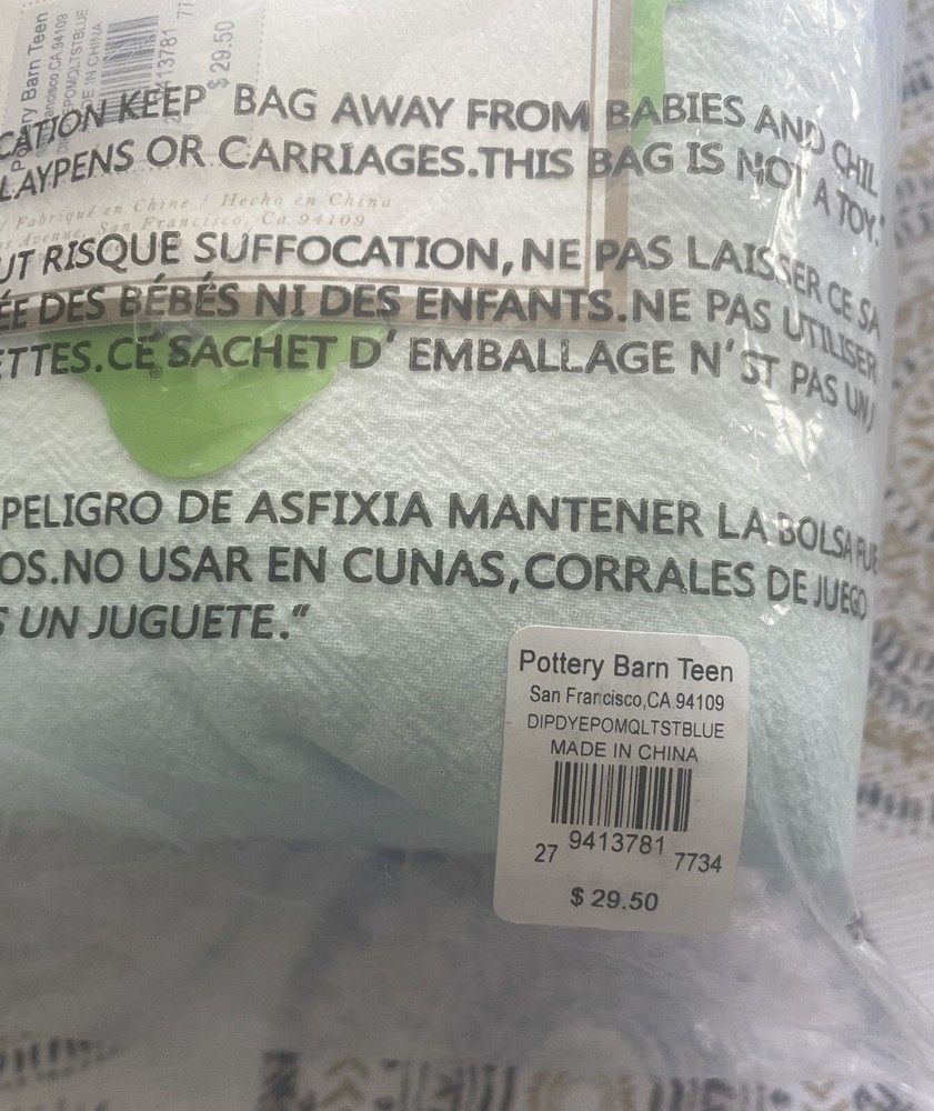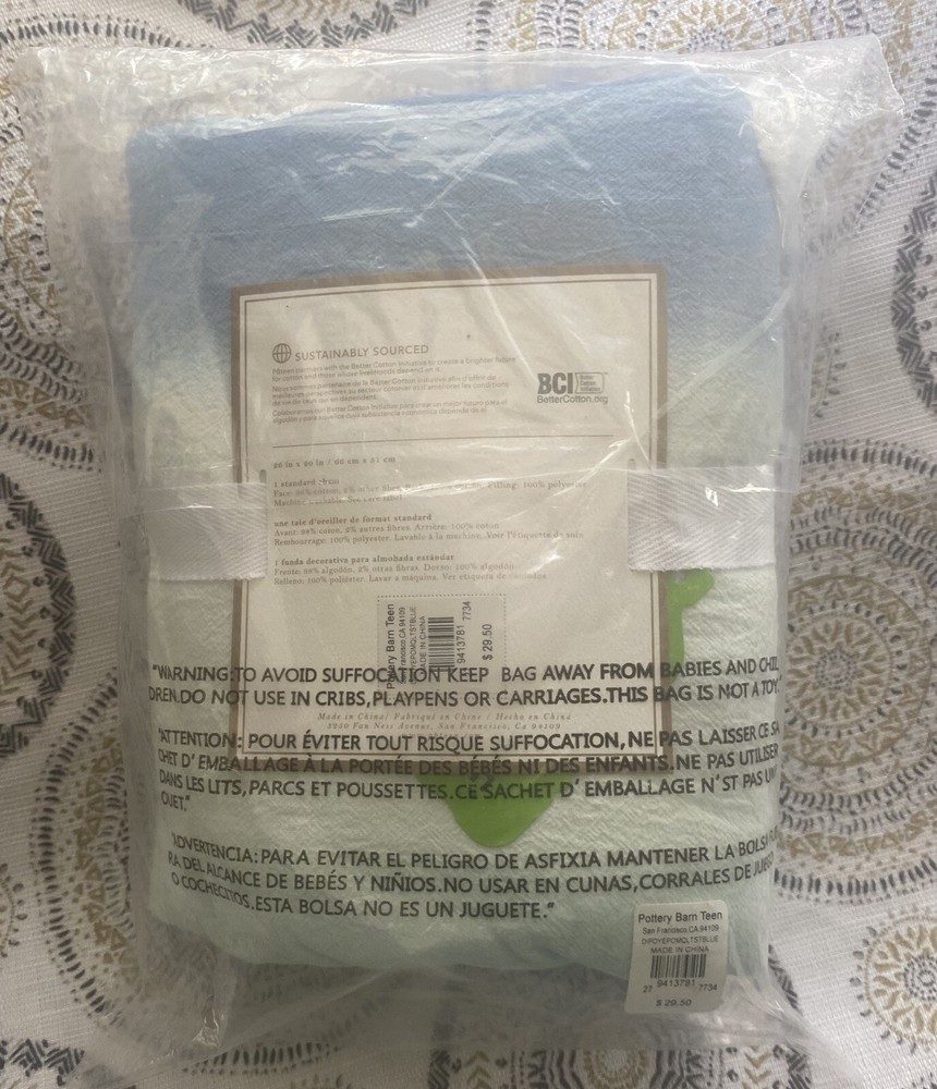 One (1) Quilted Standard Sham by Pottery Barn Teen in the Dip Dye Pom Bedding Collection ~Blue Multi~ This pure cotton Dip Dye Pom Sham is full of textured details and bright hues to add a splash of color to your sleeping space. Made of 100% cotton with hand-tufted poms. Machine wash. New with Tags