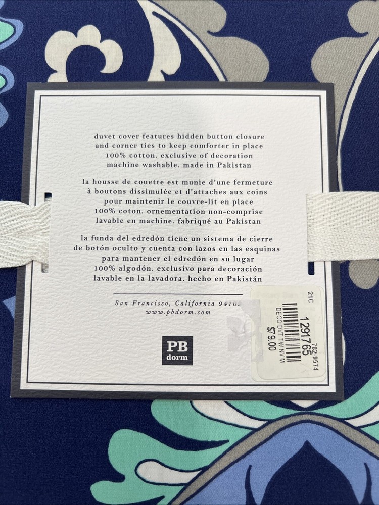 Pottery Barn Teen Dorm Deco Medallion Duvet Cover Twin Navy Green NWT New Add a touch of sophistication to your teen's bedroom with this Pottery Barn Teen Dorm Deco Medallion Duvet Cover. The twin-sized duvet cover is made of 100% cotton material and features a stylish medallion pattern in navy green color. The closure type is buttons, and the set includes only the duvet cover. This duvet cover is perfect for teens who want to add a touch of elegance to their bedroom without compromising on comfort. It is machine washable and easy to maintain. The Pottery Barn Teen Dorm Deco Medallion Duvet Cover is a great addition to any bedroom decor. Smoke-free/pet-free seller Retail price$79.00