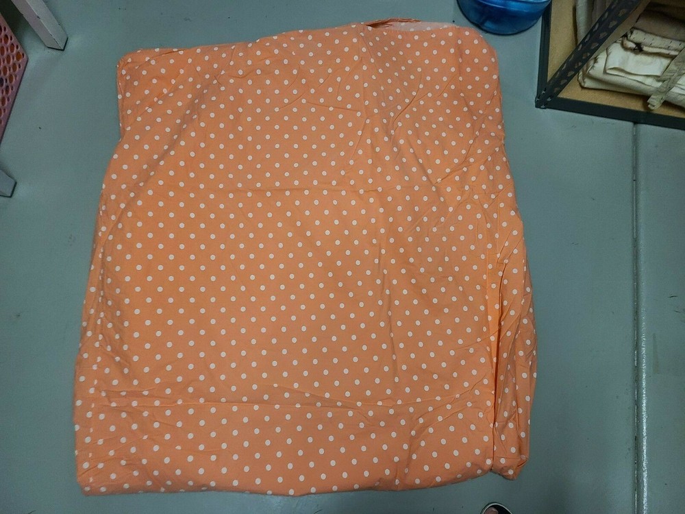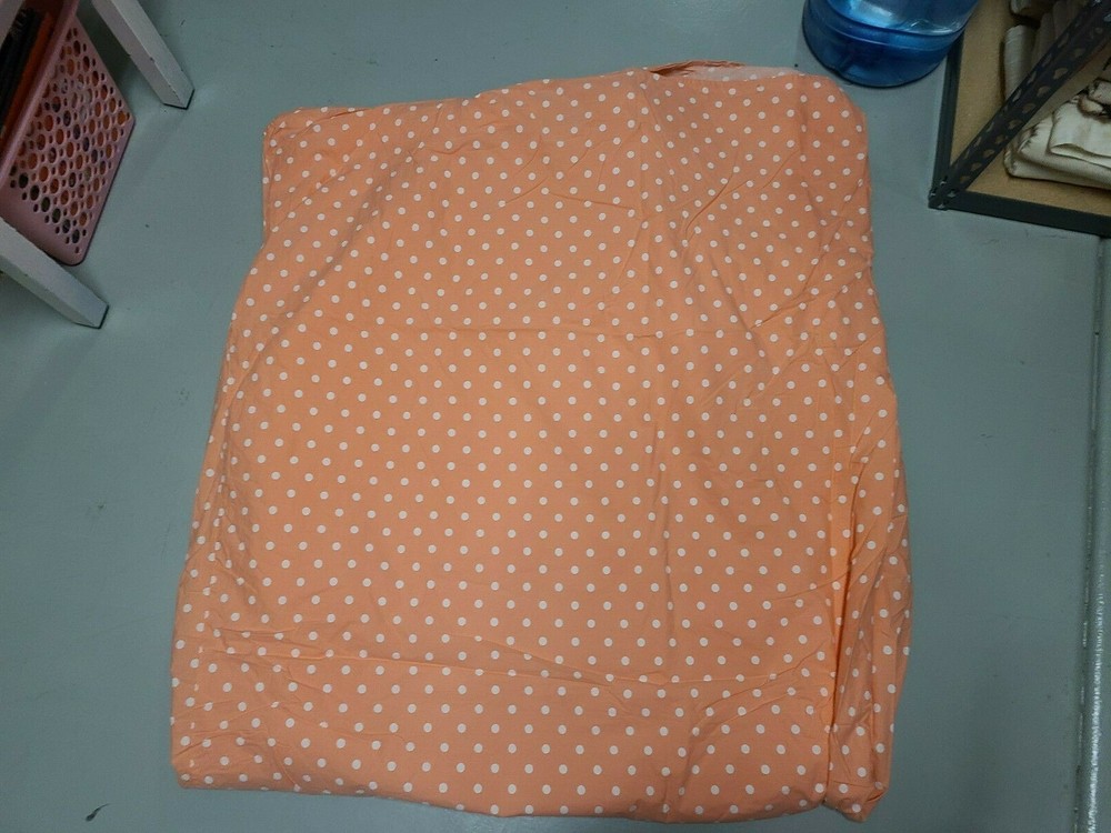 Beautiful! In very good condition! 100% cotton; apricot with mini white polka dots; button closure; Will combine shipping on multiple purchases. Thanks for looking! All items are sold "AS IS" , they are pre-owned unless otherwise stated and will need to be washed ; if you have any questions about the item please ask before purchasing; No refund will be given on a missing part, wrong colors (ex. White not as white as customer wants), wrong pattern, dirt (I live in the desert so it's inevitable – it washes right out), size, grease pencil marks or tag holes. I try to describe item the best that I can and supply numerous photos, please look at photos closely -- I will be more than happy to take different photos, measurements, etc. if needed for you. Thanks for looking!