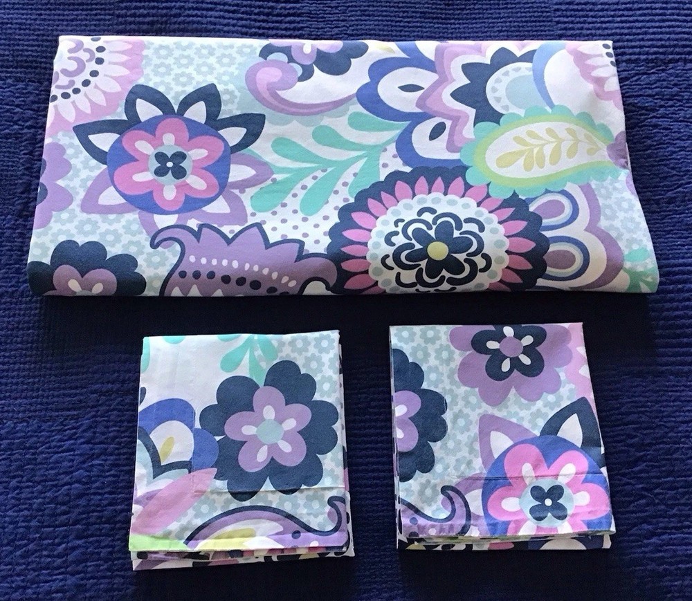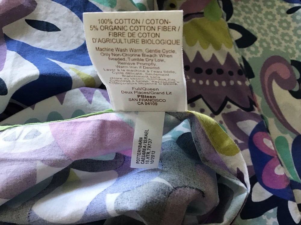 Pottery Barn Teen Floral & Paisley ….FULL/QUEEN Duvet Cover (84”x86”) + 2 Standard Shams (28”x24”)…….100% Cotton (5% Organic). Button closure with corner ties….in great condition-- no issues noted…..great cheerful floral/paisley pattern…smoke free and pet free home….. Please see photos and ask any questions…. Thank You~