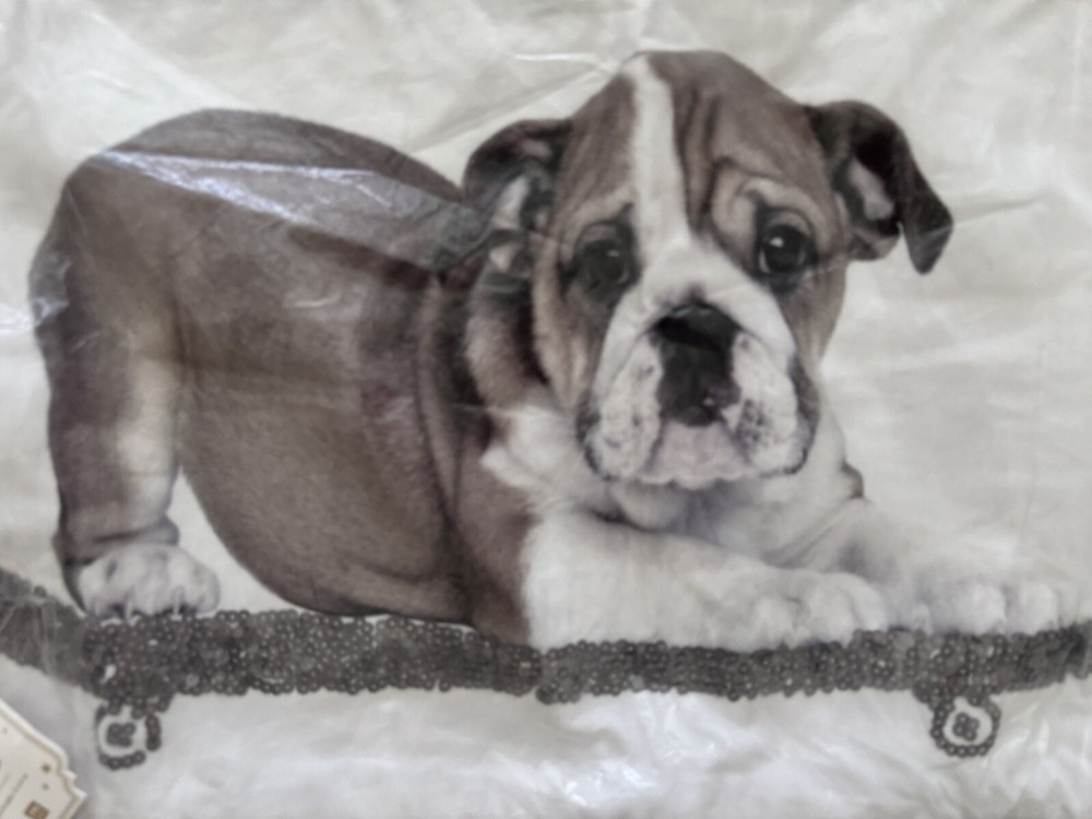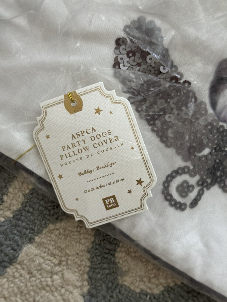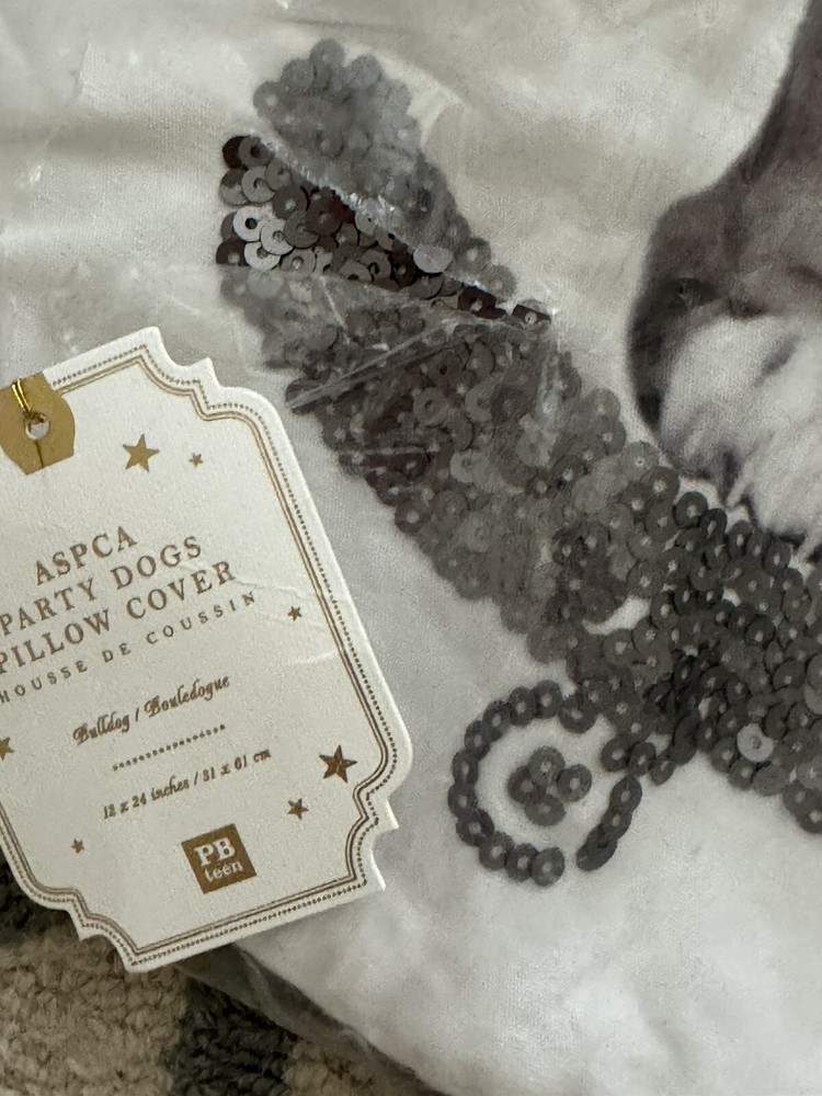 Brand New With Tags Pottery Barn ~Party Dogs English Bulldog~ 12” x 24” Accent Pillow Cover. This pillow cover is made of soft cotton canvas and these adorable Party Dogs Pillow Covers add a cute accent to your room. DETAILS YOU’LL APPRECIATE Made of 100% cotton canvas with sequin detailing. Pillow reverses to solid color. Hidden zipper closure. Insert sold separately. Machine wash. Imported. Overall: 12" wide x 24" long. Machine wash in warm water; gentle cycle. Use only non-chlorine bleach, if needed. Tumble dry on low heat; remove promptly. Warm iron if needed. Please let me know if you have any questions or would like additional pics. Also, please ask all questions prior to bidding as I do not normally accept returns, unless I have made a mistake while listing the item. At this time, I am only able to ship to confirmed US addresses... Item comes from a clean, non-pet and non-smoking home. Thanks for taking the time to view this great item, and Happy Shopping!! 😀