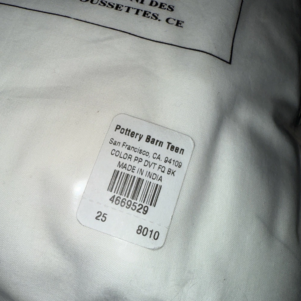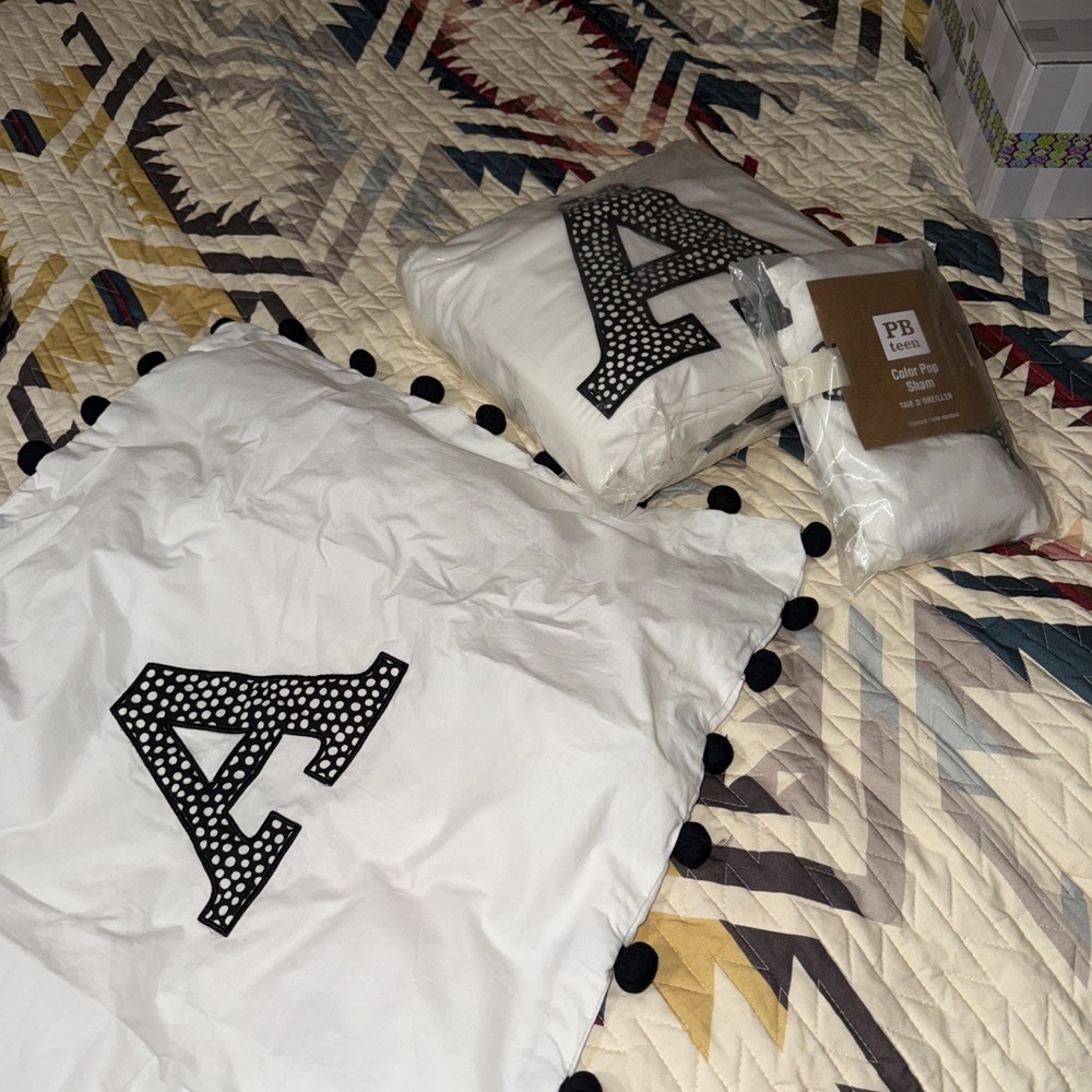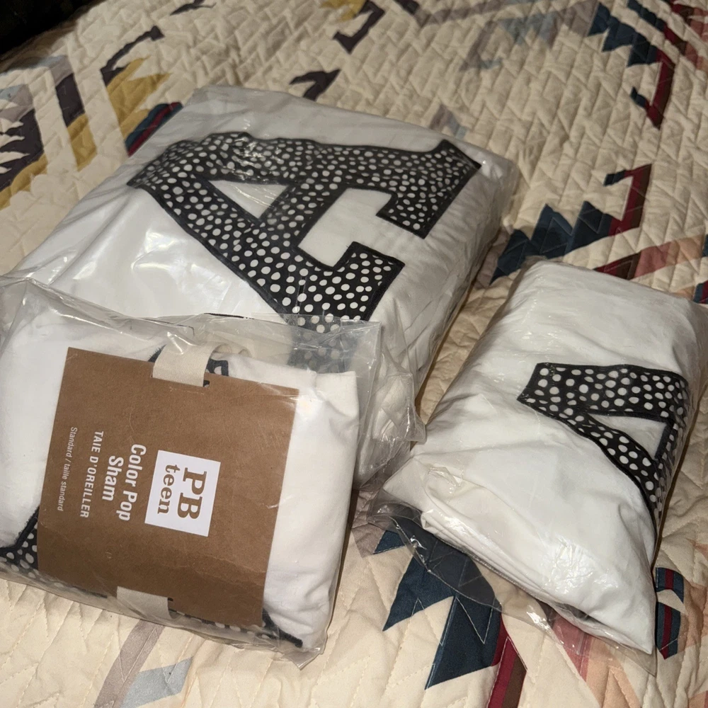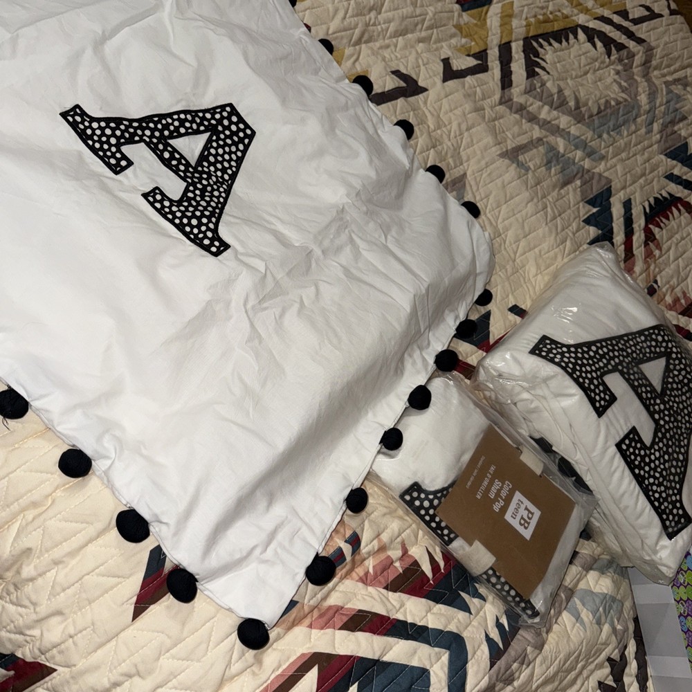 The Pottery Barn Teen Full-Queen Duvet Cover & 2 Standard Shams in the A color pop pattern is a stylish and contemporary bedding set designed for teens' bedrooms. Made from 100% cotton, this personalized set includes a duvet cover and pillowcases, perfect for creating a vibrant and colorful space. The multi-color design adds a fun and trendy touch to any bedroom, making it a great choice for teenagers looking to add a pop of personality to their decor.