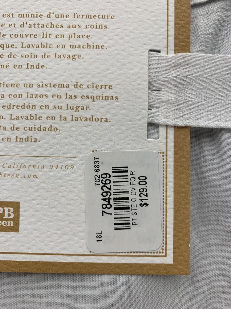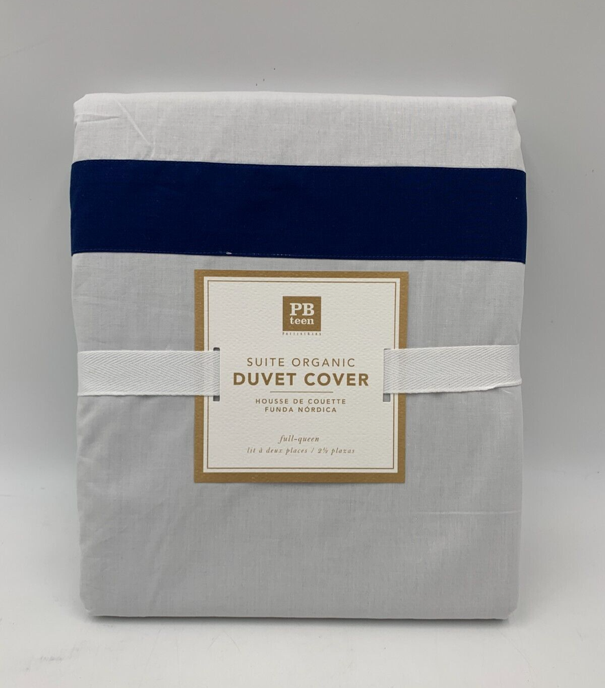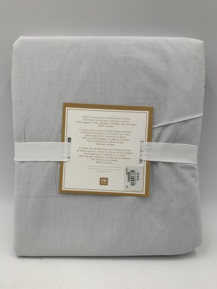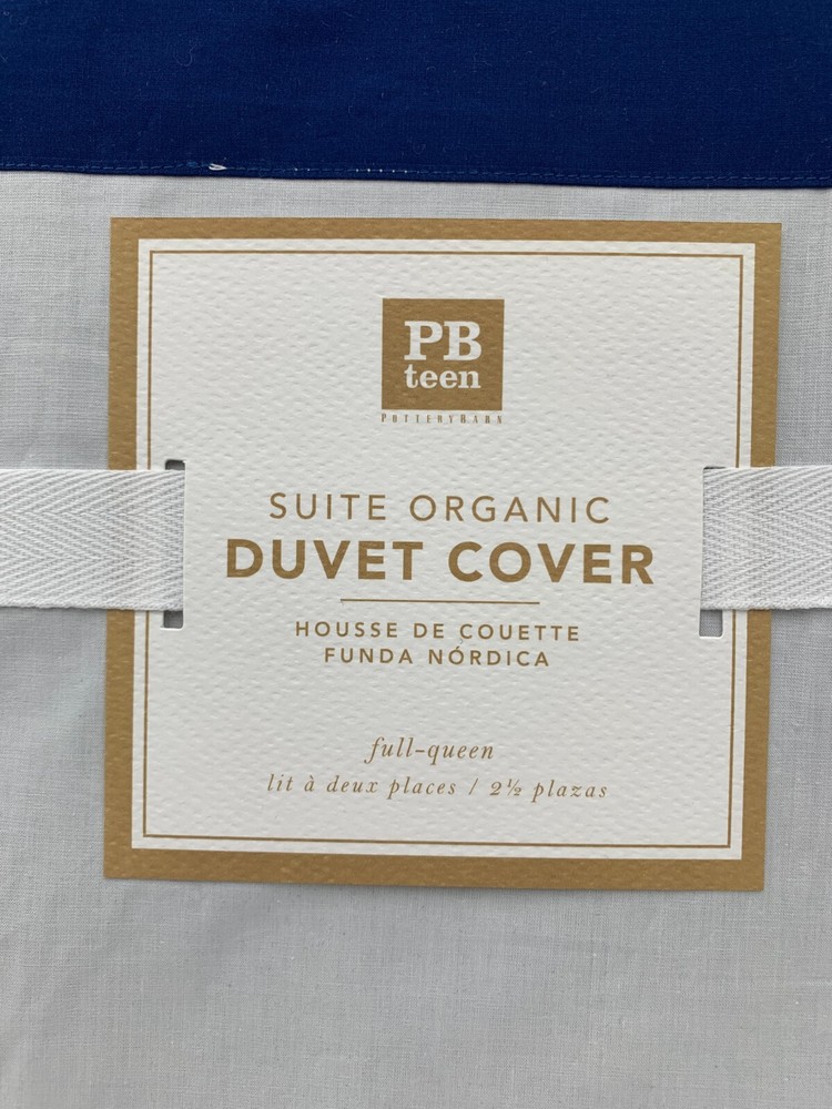 Pottery Barn Teen Girls Suite Organic Duvet Cover Item is brand new Auction includes: 1 duvet cover FEATURES: Made of soft, organic cotton percale. Oeko-Tex certified organic, the definitive mark of excellence for products that are healthy for people and the environment. Finished with interior ties and a button closure to keep the duvet in place. Sham features an envelope closure. Insert sold separately; down blend or synthetic. DETAILS: Duvet Cover Twin: 68 x 86" Full/Queen : 88 x 90" King: 92 x 108" Sham Standard: 20 x 26" Euro: 26" square CARE: Machine wash in warm water; gentle cycle. Use only nonchlorine bleach, if needed. Tumble dry on low heat. Warm iron as needed.