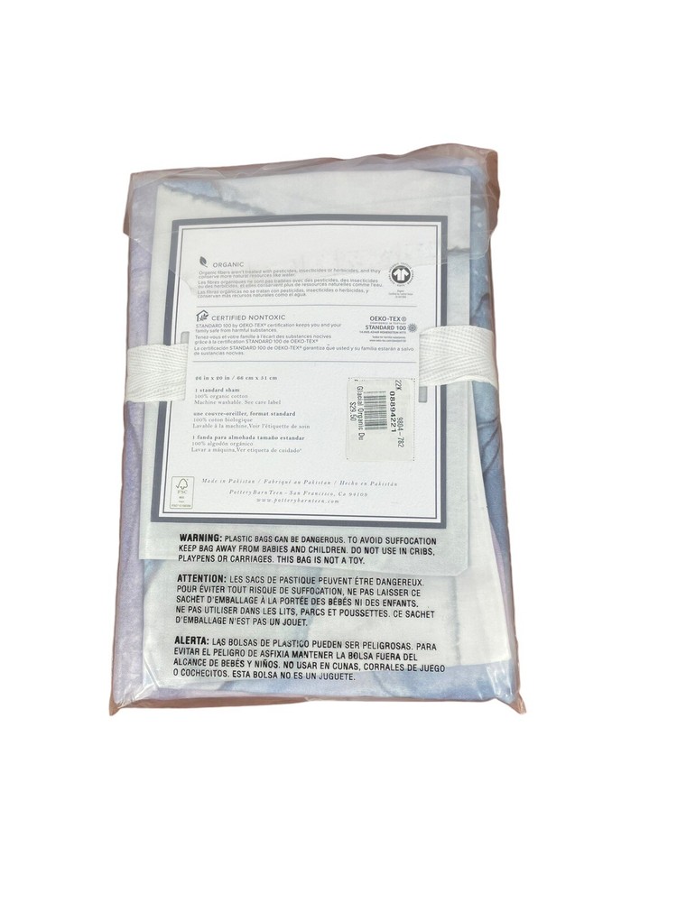Twin/Twin XL: 68" wide x 86" long Standard: 26" wide x 20" high Swirls of translucent color make this duvet cover and sham abstractly cool, while pure organic cotton makes it cozy and ultrasoft. Crafted from sustainably sourced cotton, the bedding is GOTS certified, the standard of organic textiles, for a healthier sleep space. 100% organic cotton certified to the Global Organic Textile Standard (GOTS) by CU 806118. Meets strict social and environmental standards. Made from 100% organic cotton percale; a percale weave is noticeably denser and wears well over time. 200-thread count. Twin-sized duvet cover fits both standard twin and twin XL dorm mattresses. Duvet cover and sham reverse to same as front. Duvet cover has interior ties and a hidden button closure to keep the duvet in place; sham has a center closure. Duvet cover, shams and inserts sold separately. Machine wash. Imported.