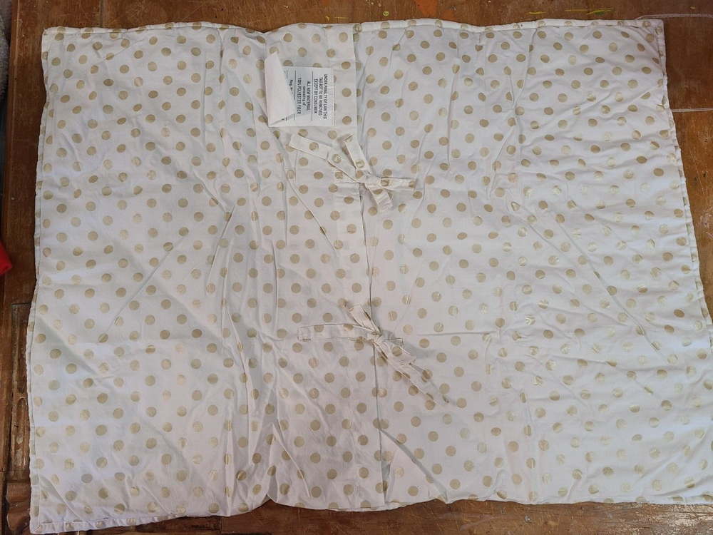 This sham is adorable and in great shape—soft, well-padded, and just as described! The gold dots add a fun touch, and the quilting gives it a cozy feel. Light wear but nothing a wash won’t freshen up. Seller is upfront about condition, so no surprises. Perfect for sprucing up a teen’s room!