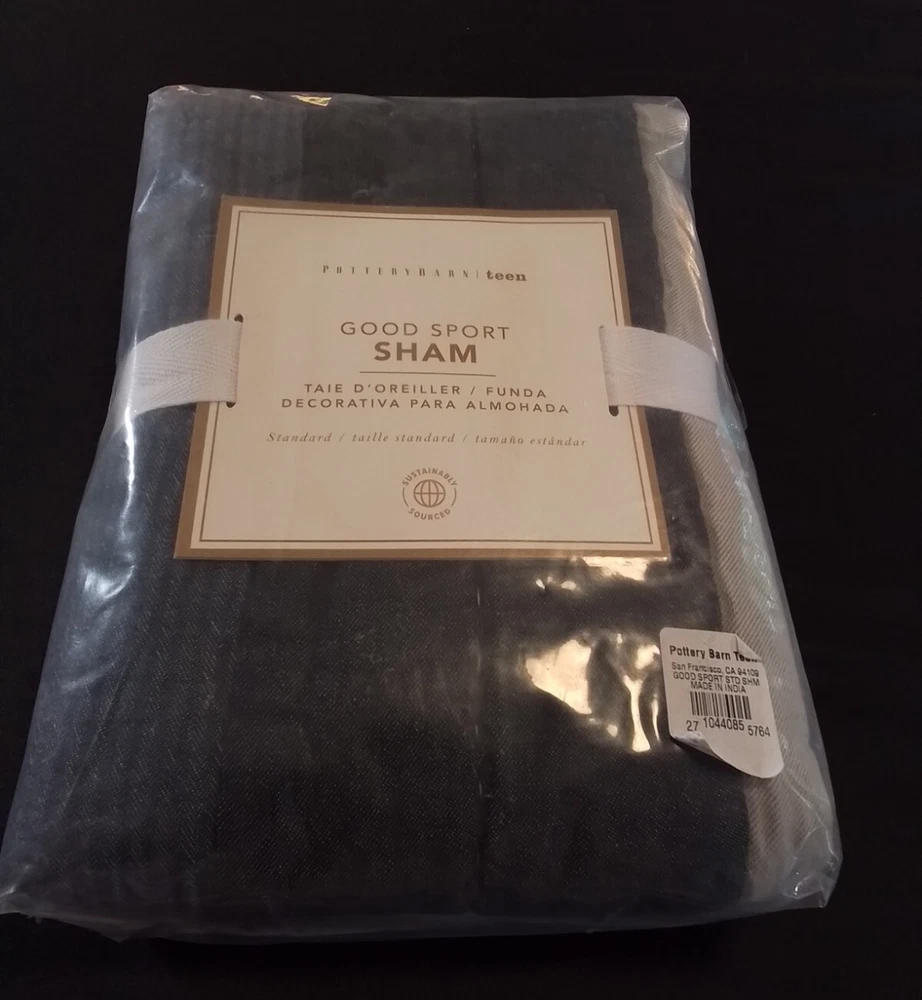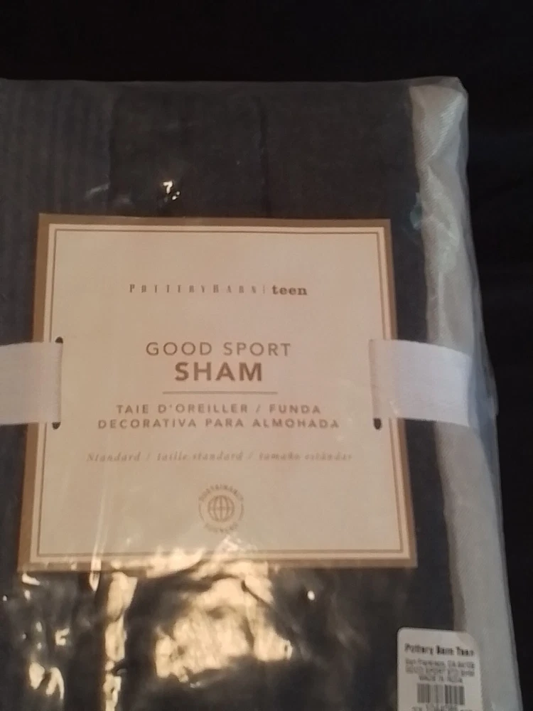 Pottery Barn Teen Good Sport Standard Pillow Sham Blue & Gray Style Bedding Bring a sporty, laid-back vibe to your room with this Pottery Barn Teen Good Sport Standard Sham in blue and gray . Perfect for teens, dorms, or casual bedrooms, this sham combines comfort and style with a modern athletic flair. Item Details: Brand: Pottery Barn Teen Collection: Good Sport Color: Blue and Gray Size: Standard (Approx. 20" x 26") Material: 100% Cotton Condition: New With Tags Closure: Envelope Care Instructions: Machine washable