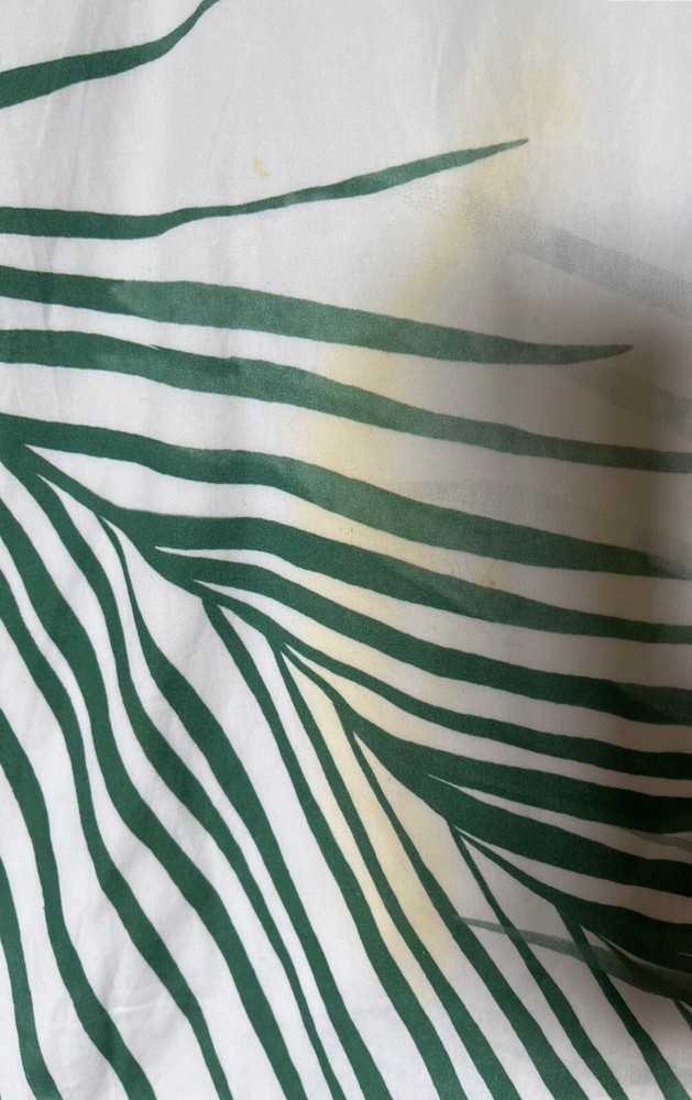 Pottery Barn Teen Green Jade Tropical Paradise Palm Leaf Full Queen Duvet Cover Please see the listing’s picture for the stain mark on the duvet cover. This listing is for one duvet cover only. Please note that this pattern has a washed weathered vintage look. This duvet cover is made of 100 % organic cotton. This duvet cover is machine washable. Please look at the listing's picture. The washed faded uneven colors effects is part of the pattern. Please note that the pattern is only on the one side. The background color is a white to a slightly off white color. The size of this duvet cover is approximately 90 inches X 88 inches. Please read and follow all instructions and or warnings included with the item before using!! All sales are final. The Item is as presented, listed & described to the best of my ability. Please understand that due to the many variations in monitors and browsers, colors shown in the listing’s picture may appear different on different monitors / devices. Computer monitors / devices are not all calibrated equally and the shade of color presentation in the listing’s picture is not precise and exact. Please ask us any questions. We are happy to help! SHIPPING INFORMATION Please double check the shipping address before submitting payment and make any necessary changes. For your protection, we are unable to change the shipping address AFTER the payment has been submitted. Please use the shipping calculator to determine shipping costs for international shipment. Please note that Parcel Post will take up to 14 business days for your item to be delivered from the shipping date! Expedited Shipping is available for an additional charge. Please contact us first for assistance for the next available ship date. We reserve the right to refuse or cancel an order for any reason, including limitations on quantities available for purchase, inaccuracies, or errors in product or pricing information, or problems identified through our efforts to avoid fraud and/or account manipulation. PLEASE CONTACT US IF YOU HAVE ANY QUESTIONS BEFORE THE TRANSACTION. WE ARE HERE TO HELP! FEEDBACK POSITIVE FEEDBACK IS GREATLY APPRECIATED IF YOU ARE SATISFIED WITH THE TRANSACTION. IF YOU ARE FOR ANY REASON NOT SATISFIED AND ARE CONSIDERING LEAVING NEUTRAL OR NEGATIVE FEEDBACK, PLEASE CONTACT ME FIRST TO SEE IF I CAN HELP. I AM NOT IN ANY WAY AFFILIATED WITH POTTERY BARN OR WILLIAMS SONOMA!