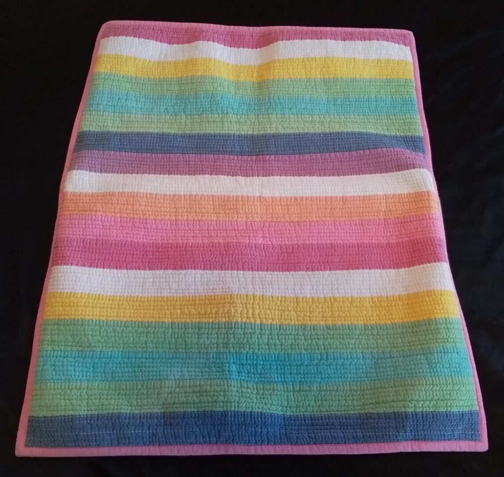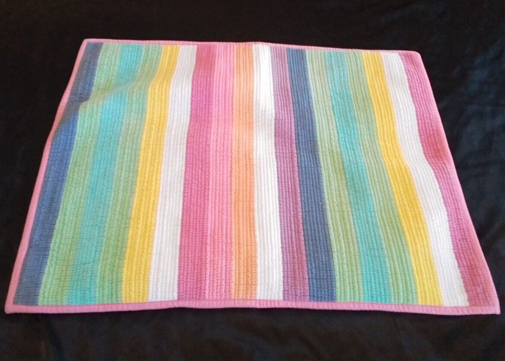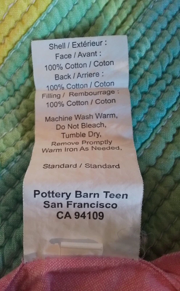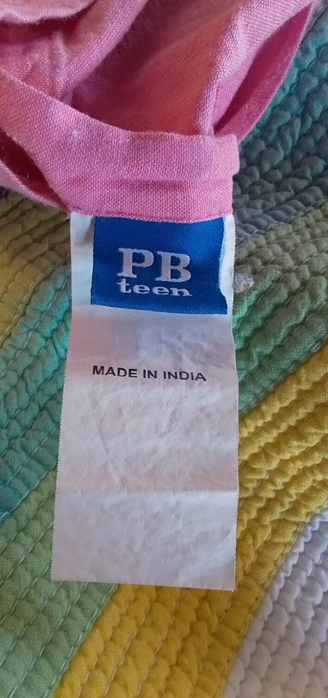 This Pottery Barn Teen Henley Stripe Pillow Sham is a modern and luxurious addition to a teen or kid's bedroom. The standard-sized sham features stripes in pink, orange, blue, and white, made of 100% cotton material. It is quilted, machine washable, and has an envelope closure. Easy care instructions include machine wash and tumble dry. Made in India as part of the PB Teen product line.