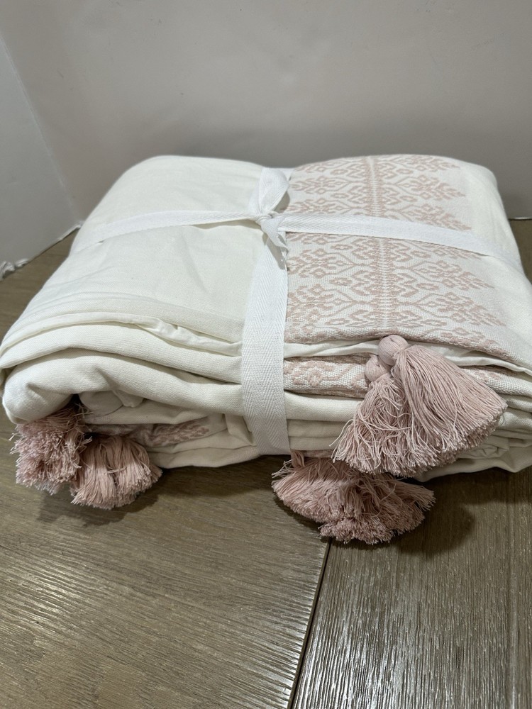 Pottery Barn Teen Indira Jacquard Full Queen Duvet Cover in Vintage Rose new without paper tags. attached tags have been marked out as shown in the photo.