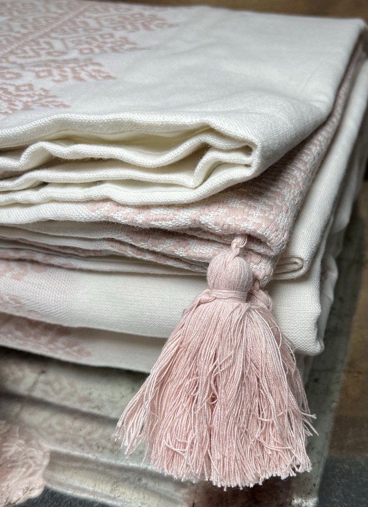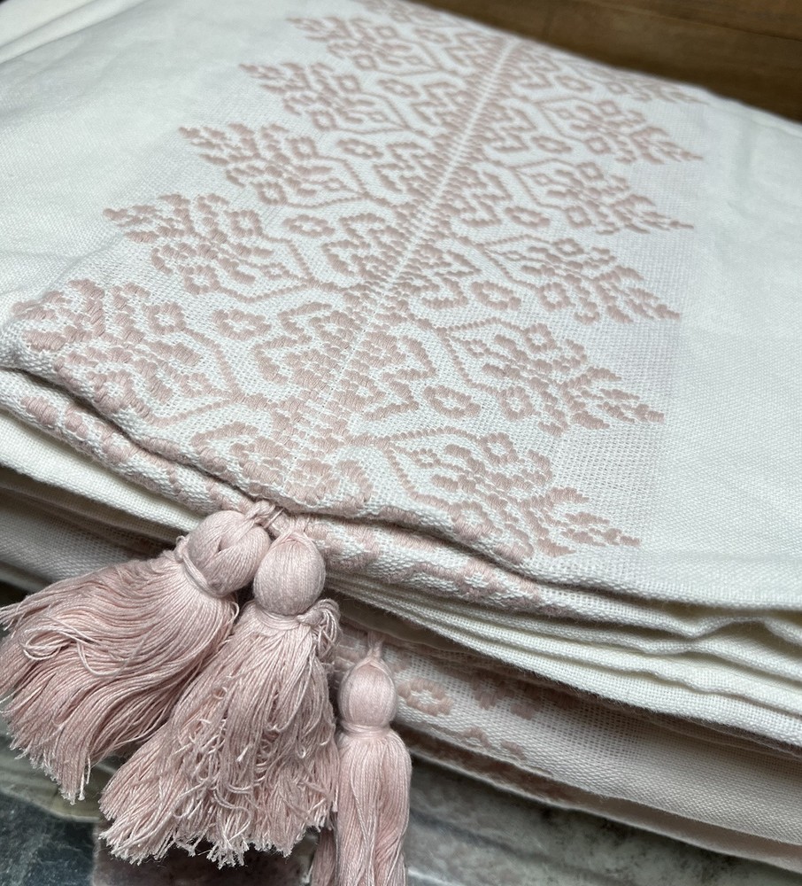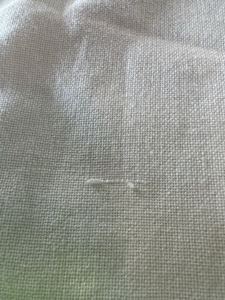 New but has one small snag shown in pictures Made of 100% cotton. Yarn-dyed fiber has incredibly rich color that holds its vibrancy over time. Duvet cover has interior ties and a button closure....