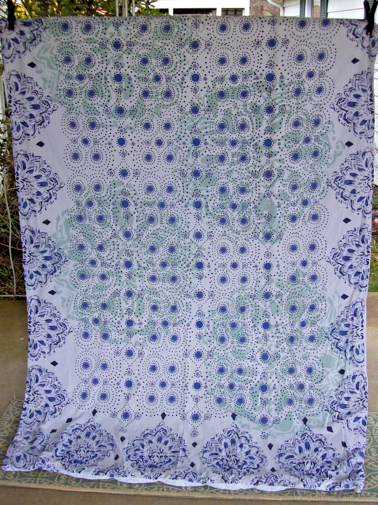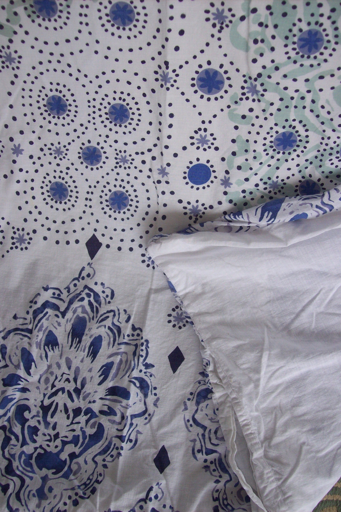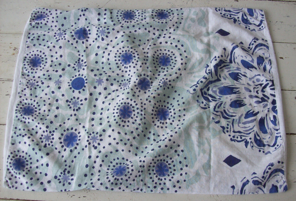 BRAND: Pottery Barn Teen DESIGNER: Kelly Slater ITEM: Duvet cover and matching pillow sham PATTERN: Ocean Floral FABRIC: 100% organic cotton COLORS: Blue, green, white SIZE: Duvet = Twin (86 inches long X 65 inches wide) Sham = Standard (24 inches x 18 inches) CONDITION: Pre-owned, very good; no stains, holes or tears; sham has slight shrinkage