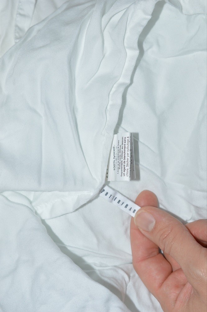Pottery Barn Teen Microfiber Luxe Pintuck Duvet Cover Full Queen White 2 Shams. This set includes two shams, but one is slightly discolored. It is a bit gray, see photos. The duvet and the other sham are a bright white. I didn’t try to wash the sham. Good condition. No stains, tears or odors. Please see photos!