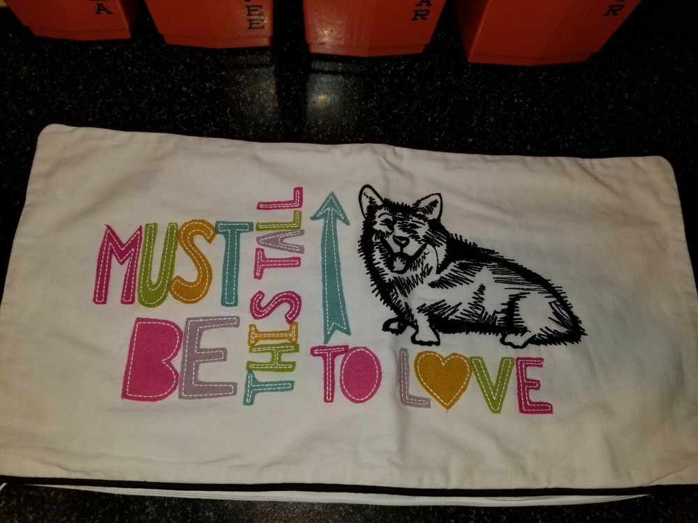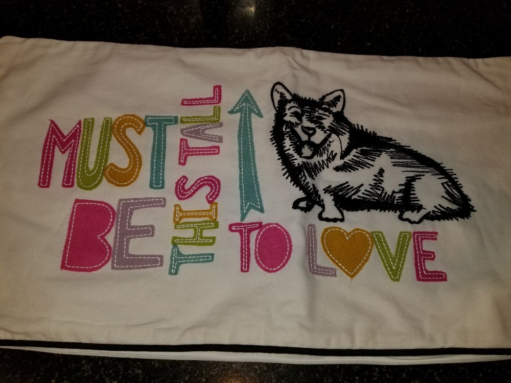 Super cute! In very good condition! pillow cover is white with embroidered dog and appliqued saying in black and bright colors; measures 12" X 24"; Will combine shipping on multiple purchases. Thanks for looking! All items are sold "AS IS" , they are pre-owned unless otherwise stated and will need to be washed ; if you have any questions about the item please ask before purchasing; No refund will be given on a missing part, wrong colors (ex. White not as white as customer wants), wrong pattern, dirt (I live in the desert so it's inevitable – it washes right out), size, grease pencil marks or tag holes. I try to describe item the best that I can and supply numerous photos, please look at photos closely -- I will be more than happy to take different photos, measurements, etc. if needed for you. Thanks for looking!