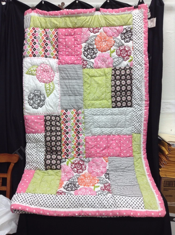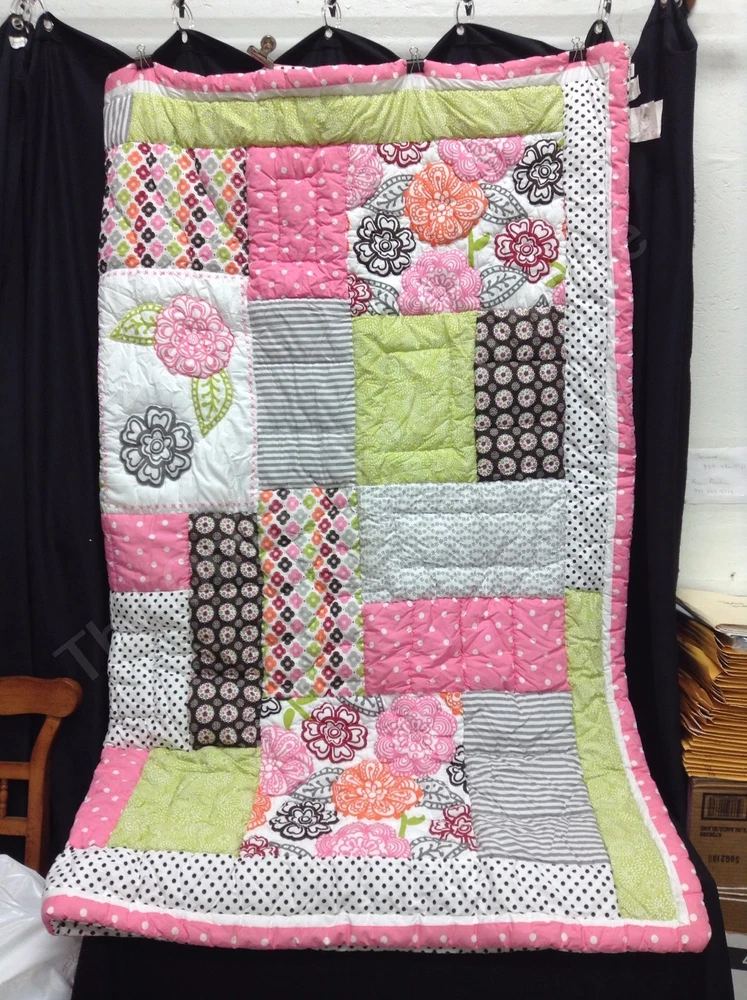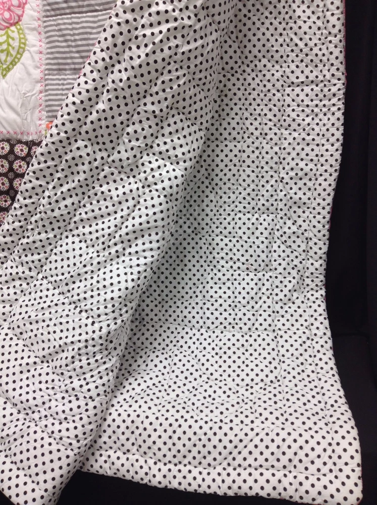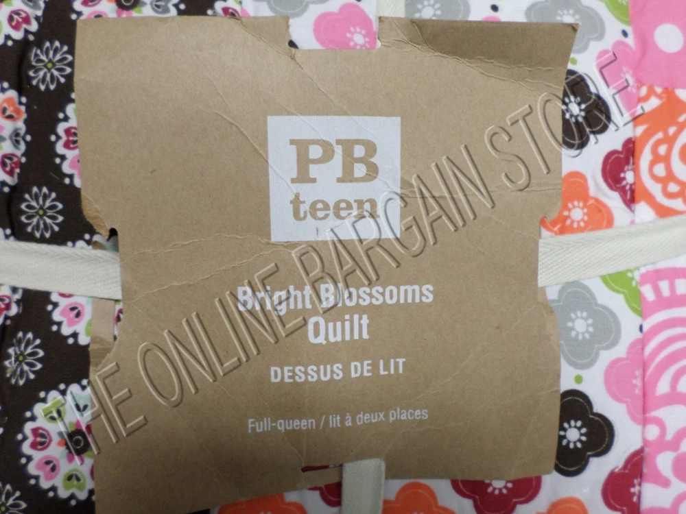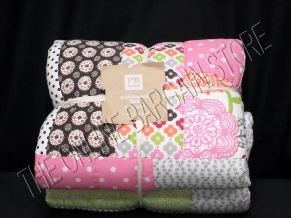 Pottery Barn Teen Bright Blossom Quilt Size: Full/Queen SOLD OUT THRU POTTERY BARN! Includes: 1 QUILT ONLY! PBT has taken some of their favorite patterns and stitched them together by hand to create a cheerful tapestry of bright stripes, polka dots, blooms and solids. Sewn of pure cotton percale, each square is accented with decorative stitching. Surface is 100% cotton percale. Quilt reverses to dottie-printed cotton percale. Machine wash. Details Quilt is filled with 320-gram-weight polyester. Care Machine wash in warm water; gentle cycle. Use only nonchlorine bleach when needed. Tumble dry on low heat; remove promptly. Warm iron as needed. See my store for more PBT items! Email with questions