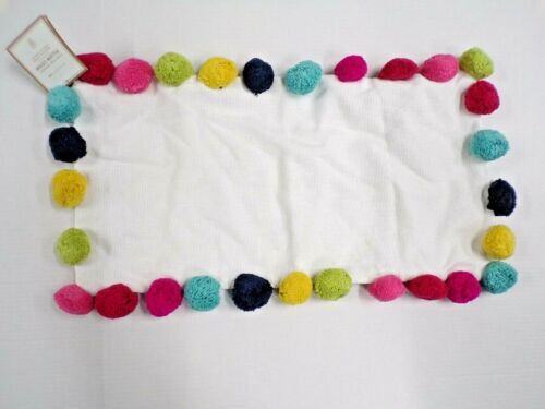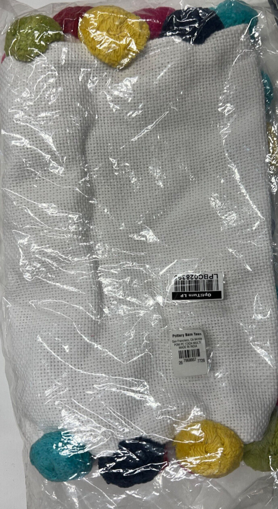 One Brand New Pottery Barn Teen Pom Pom Organic Pillow Cover Multi Rainbow 12" x 24”...
