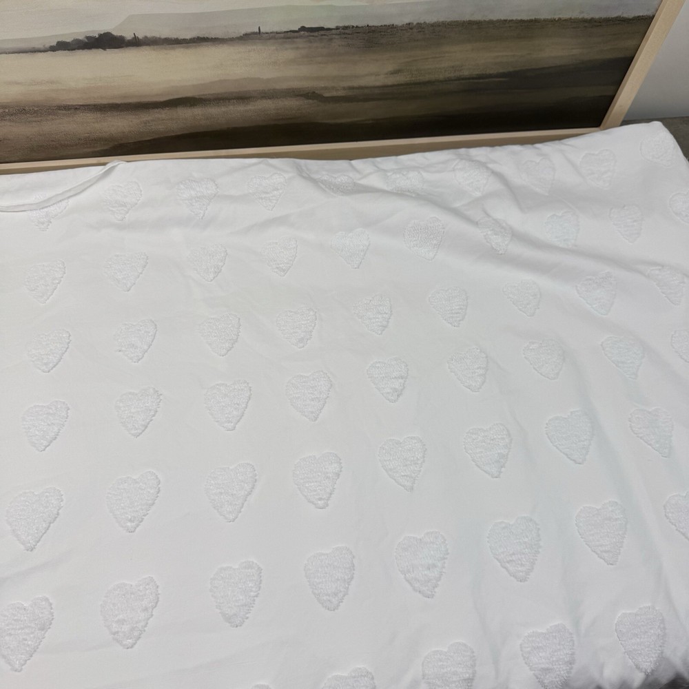 Pottery Barn Teen Roller Rabbit Tufted Hearts Duvet Cover Full/Queen White Spots Gently used Duvet / has been washed Please note, there are several spots throughout the duvet / very faint Dimensions: 90”x88”