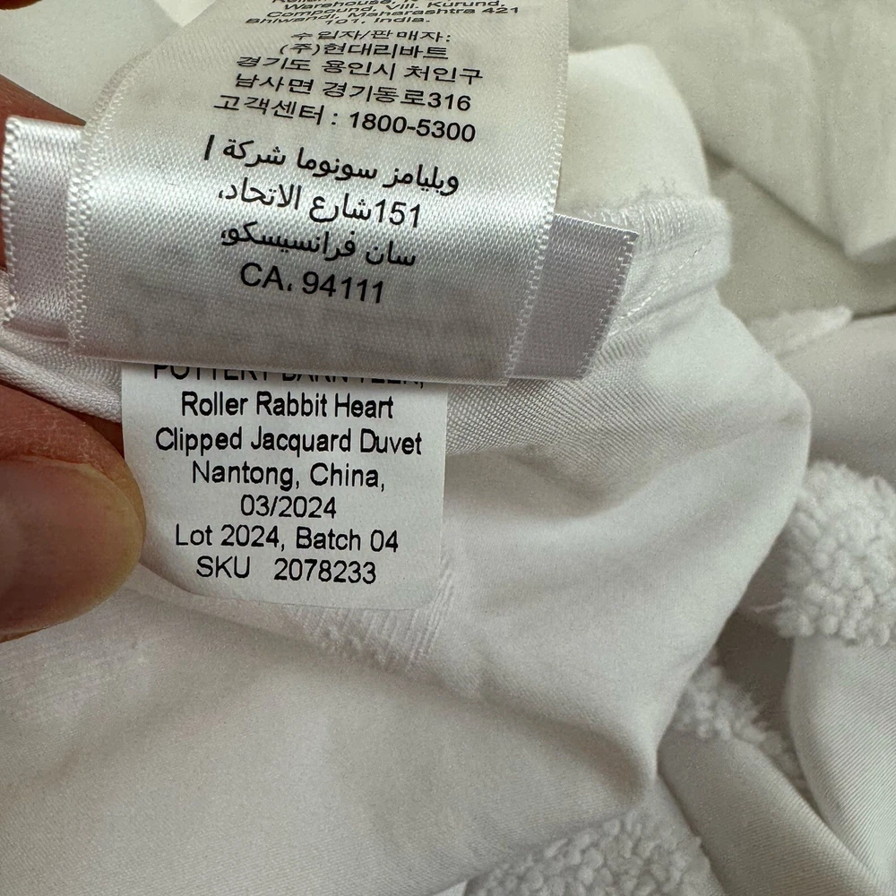Pottery Barn Teen Roller Rabbit Tufted Hearts Duvet Cover Full/Queen White Spots Gently used Duvet / has been washed Please note, there are several spots throughout the duvet / very faint Dimensions: ...