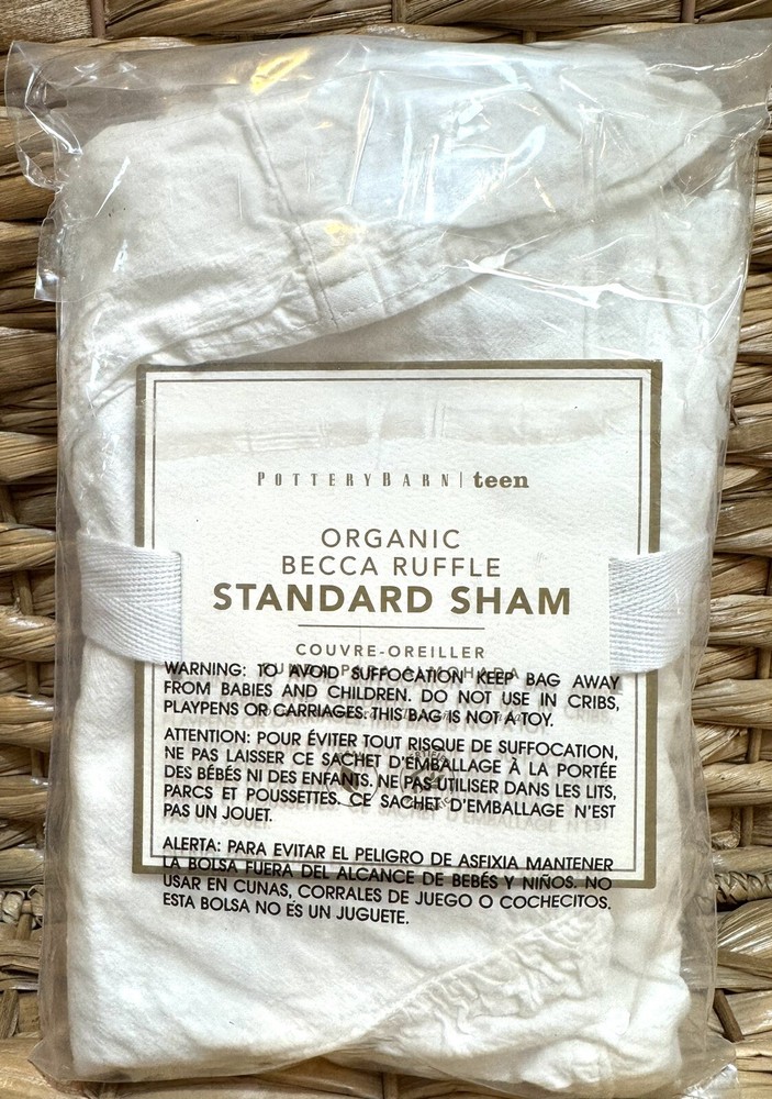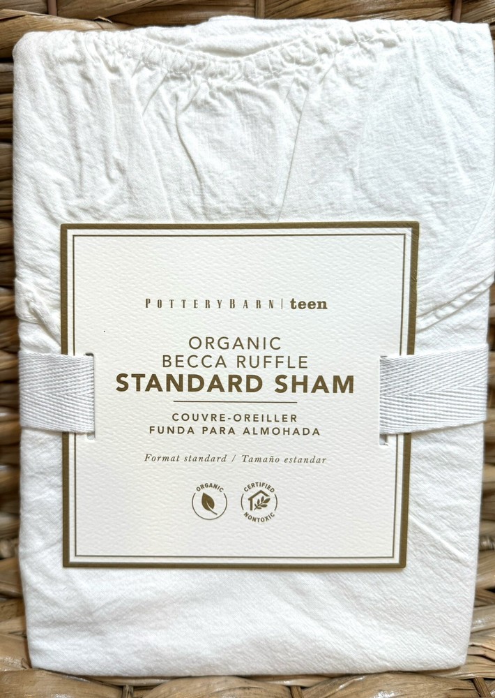 Pottery Barn Teen STANDARD Sham 100% ORGANIC Cotton IVORY Becca Ruffle, NEW Open Box, Not in original packaging Fast shipping! It is our commitment to ship same day, or next day depending upon the time of day of the order. Stored in a smoke free and pet free environment. Fragrance free. Please note that photos are a part of description and the best indication of condition of an item. If you have ANY questions please ask them PRIOR to purchasing the item. Thank you for visiting my store!