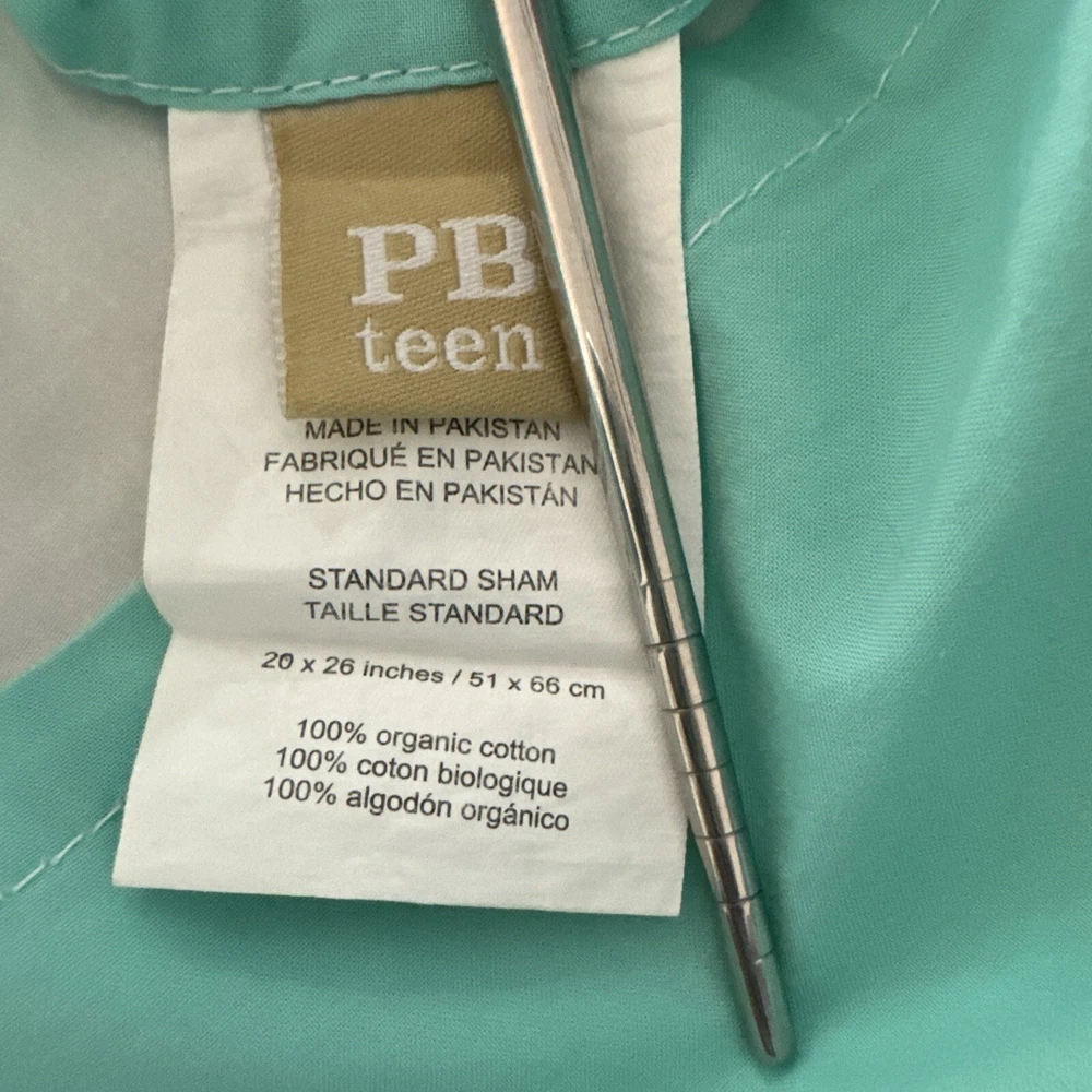 Pottery Barn Teen Standard Suite Ribbon Sham Pool Aqua Blue Green. Very nice pre-owned condition.