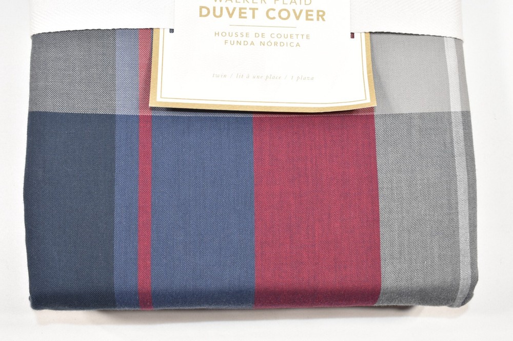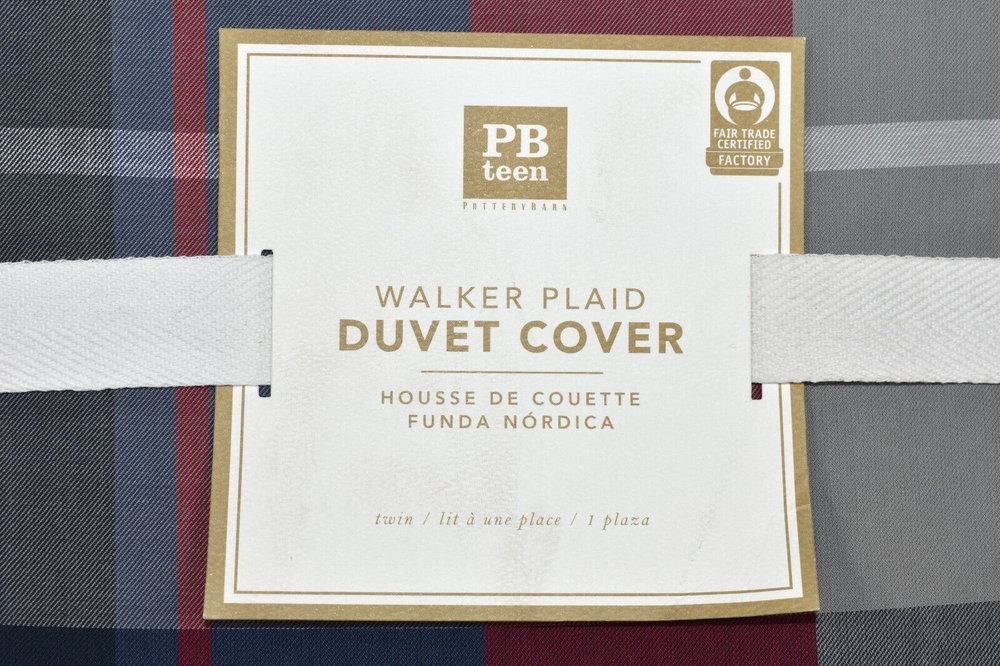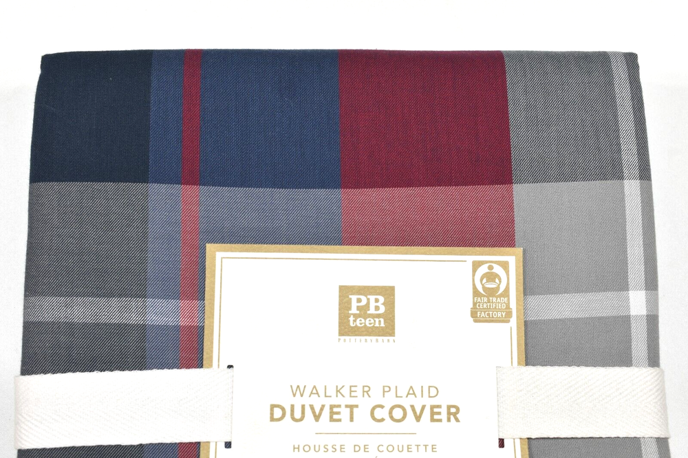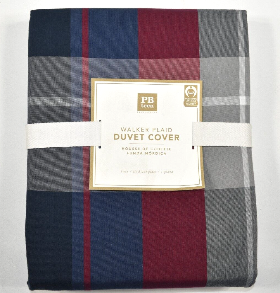 Pottery Barn Kids Teen Walker Plaid Twin Duvet Cover Navy Blue & Red! Condition: New with the original tag. Size: Twin, Approximately 68" wide x 86" long Color: Navy Blue, Red, Gray, etc. Made of 100% cotton Twin Duvet: 68" wide x 86" long Duvet cover reverses to same plaid. Duvet cover has interior ties and a hidden button closure Machine wash. Imported. Buyer pays $11.90 shipping. Thanks so much!