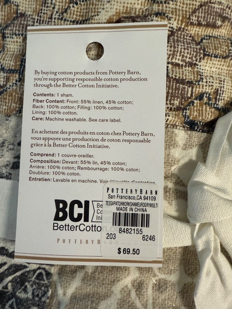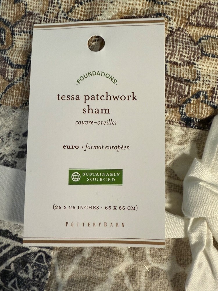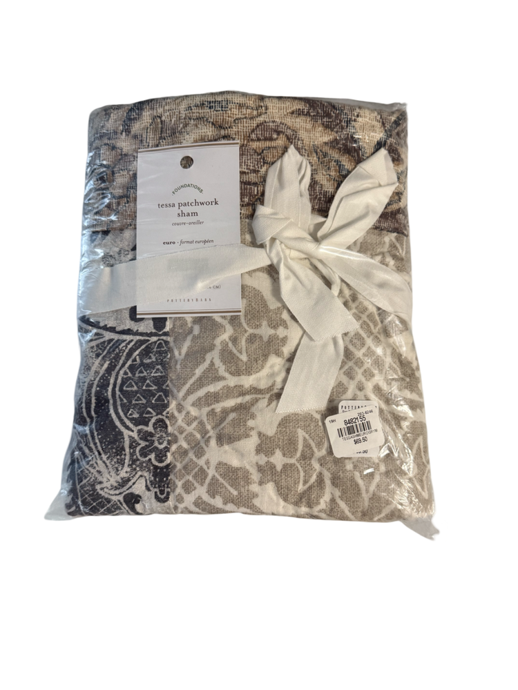 The Pottery Barn Tessa Patchwork Sham is a Euro-sized pillow sham featuring a beautiful patchwork pattern in multicolor hues. Made from a comfortable cotton blend material, this sham is part of the Pottery Barn collection and is machine washable for easy care. Perfect for adding a touch of charm to your bedroom decor, this pillow sham is designed to enhance the overall aesthetic of your bedding ensemble.