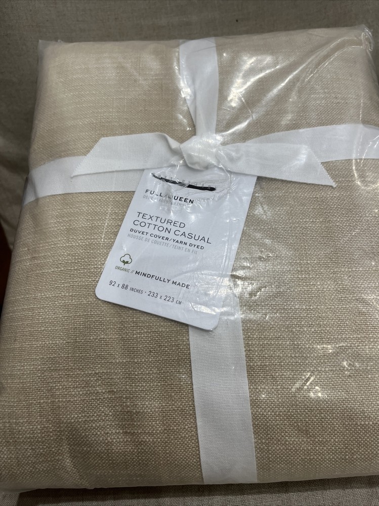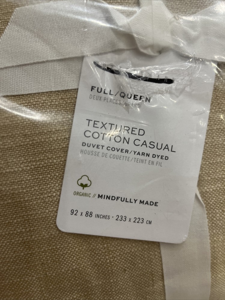 you are purchasing one Pottery Barn Textured Cotton Casual Duvet cover size is queen new with tags. paper tags have a black line through the PB name