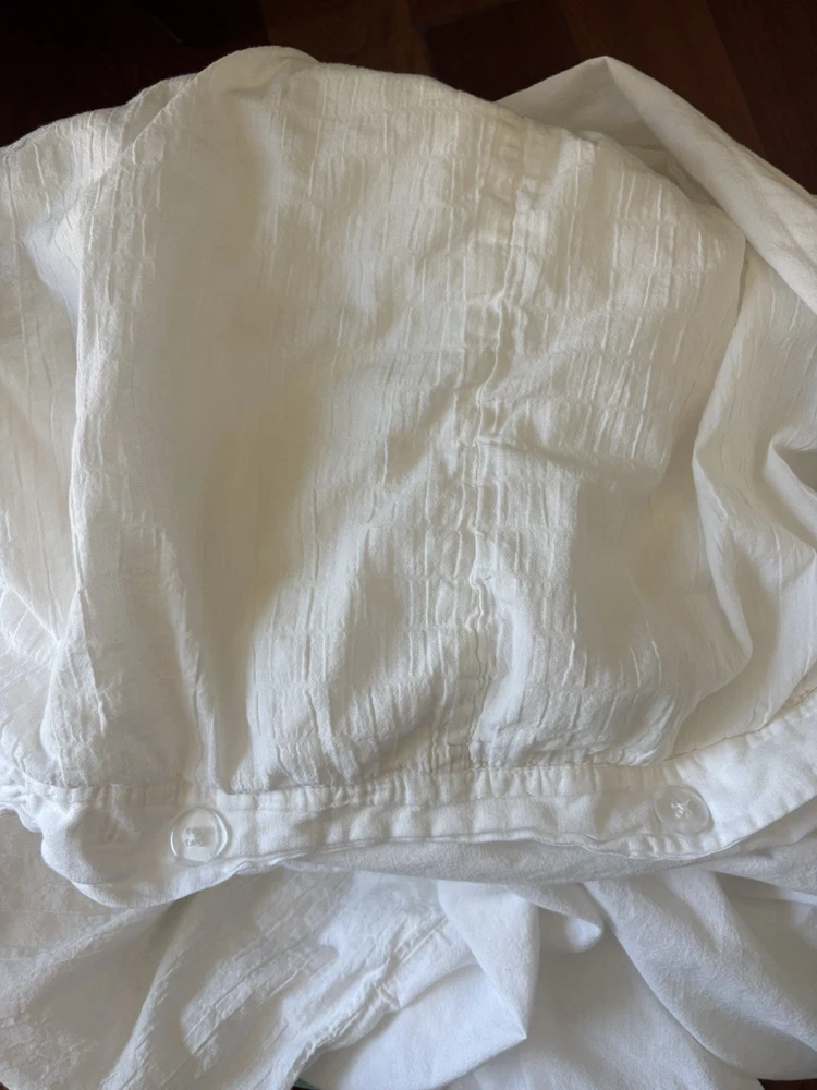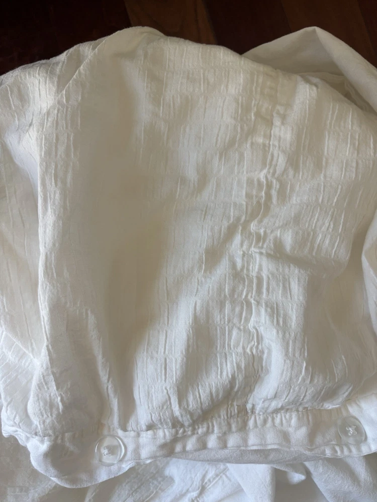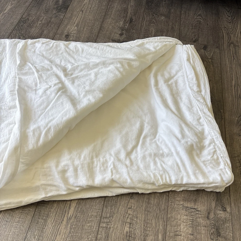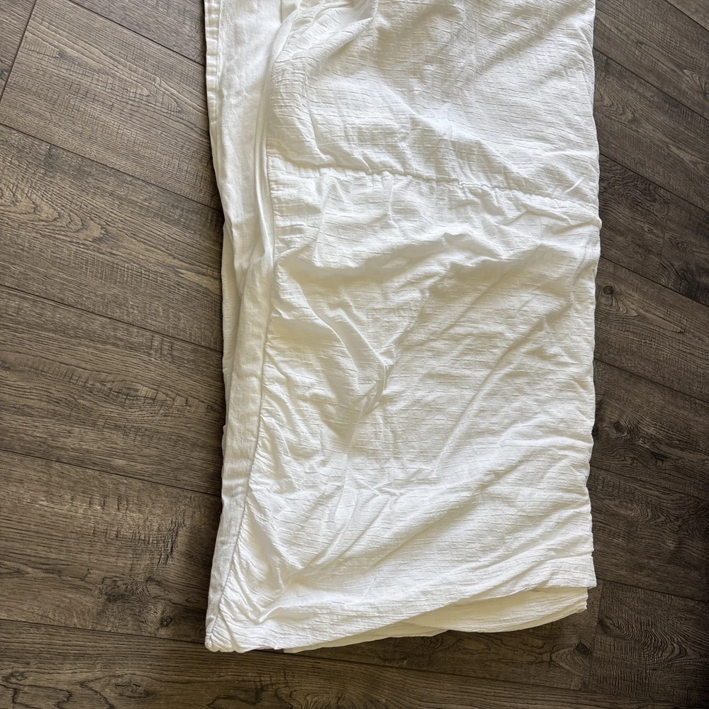 Pottery Barn white duvet cover cotton linen blend 92 in x 88 in Sold as is. Please see photos for measurements. Check out our other items@ http://www.ebay.com/str/beachandboard Buy more than 1, We will combine ship. SORRY, NO RETURNS OR EXCHANGES Sold as is.