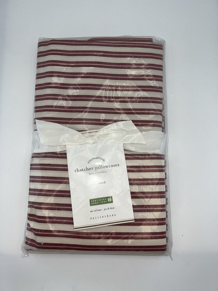 OFFERS WELCOME! Pottery Barn Thatcher Red Ticking Stripe STANDARD Pillowcases Set of 2 NEW