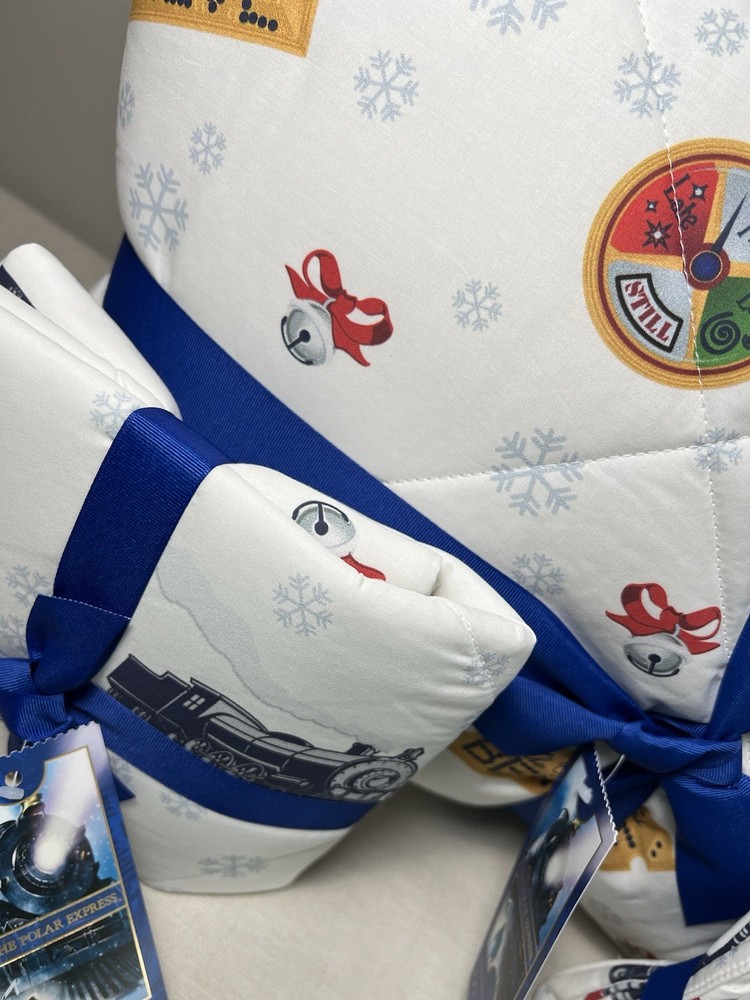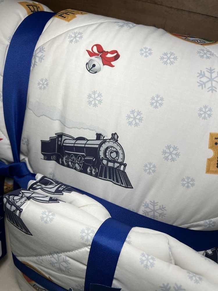 The Pottery Barn The Polar Express™ Full/Queen Comforter & Set Of Shams is a charming bedding set featuring a train pattern and the iconic Polar Express character design. Made of soft cotton with a polyester fill, this comforter set includes two standard pillow shams and a comforter, perfect for creating a cozy and whimsical bedroom ambiance. The white multi-color design adds a playful touch to the room, while the size of Full/Queen makes it suitable for a standard bed. Ideal for fans of the Polar Express movie or those looking to add a touch of whimsy to their bedroom decor. Standard shams 26x20