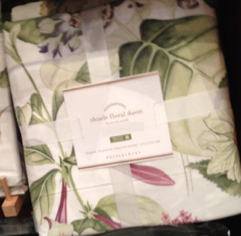 POTTERY BARN THISTLE DUVET The wild beauty of blooming thistles makes for a classic, charming bedscape. Made using mindful methods that are kinder to the environment, this design is printed on soft, organic cotton to bring new meaning to natural beauty. Made of 100% organic cotton; Organic cotton is grown without the use of toxic and persistent pesticides and synthetic fertilizers. Made of 100% organic cotton; organic cotton is grown without the use of toxic and persistent pesticides and synthetic fertilizers. Reverses to same. Duvet cover has a hidden button closure and interior ties to keep the duvet in place; 200-thread count. Duvet cover, sham and inserts are sold separately. Machine wash. Imported. Auct ion is for QUEEN DUVET COVER, with TWO STANDARD SHAMS. Item is BRAND NEW! A d d i T i O N a l P h o T O s A v a i L a B Le U p O n R e Q u e S T PURCHASED DIRECTLY FROM POTTERY BARN. AUTHENTIC.
