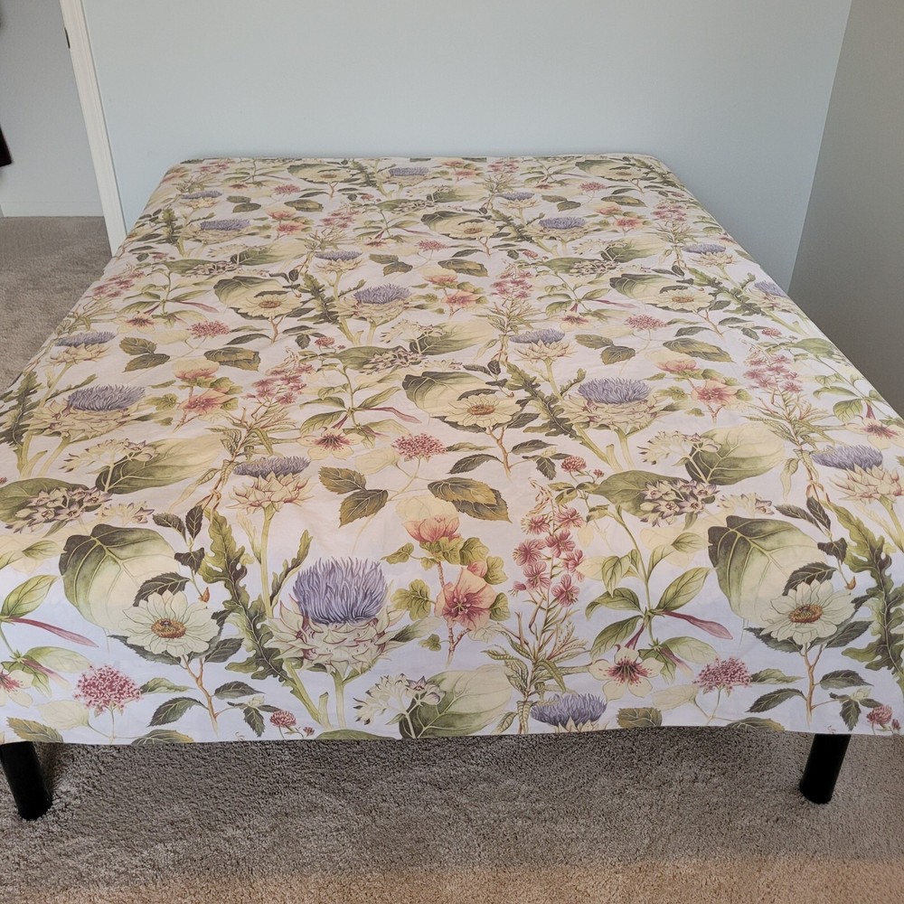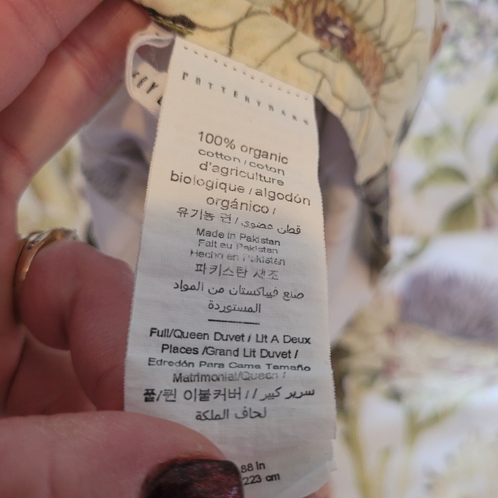 Absolutely love this duvet cover! The thistle floral print is gorgeous and adds a fresh, botanical vibe to my bedroom. Even though it’s pre-owned, the quality is still fantastic—Pottery Barn never disappoints. The small stain mentioned is barely noticeable, and the fabric feels soft and well cared for. Perfect for anyone who loves a cozy, nature-inspired look without paying full price!