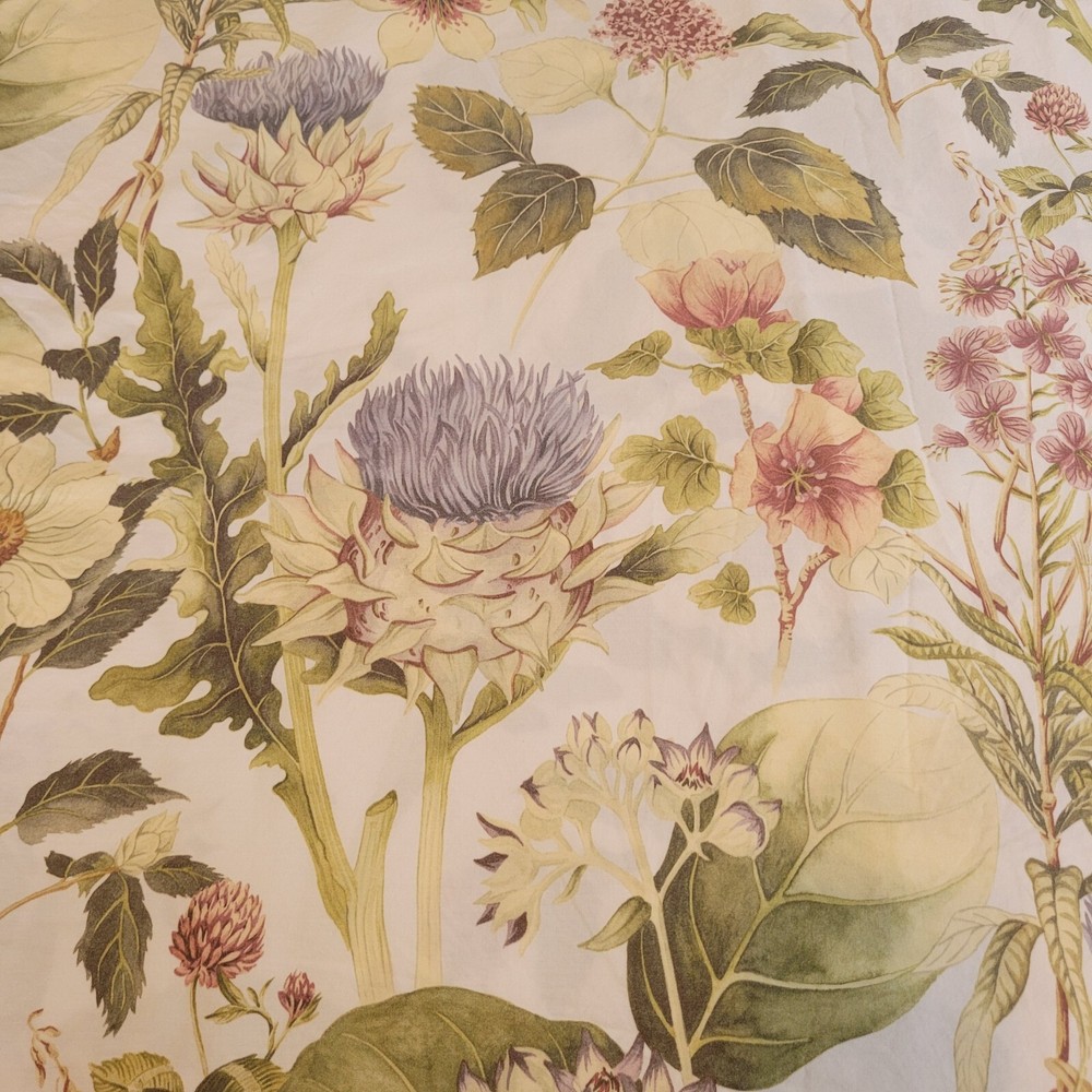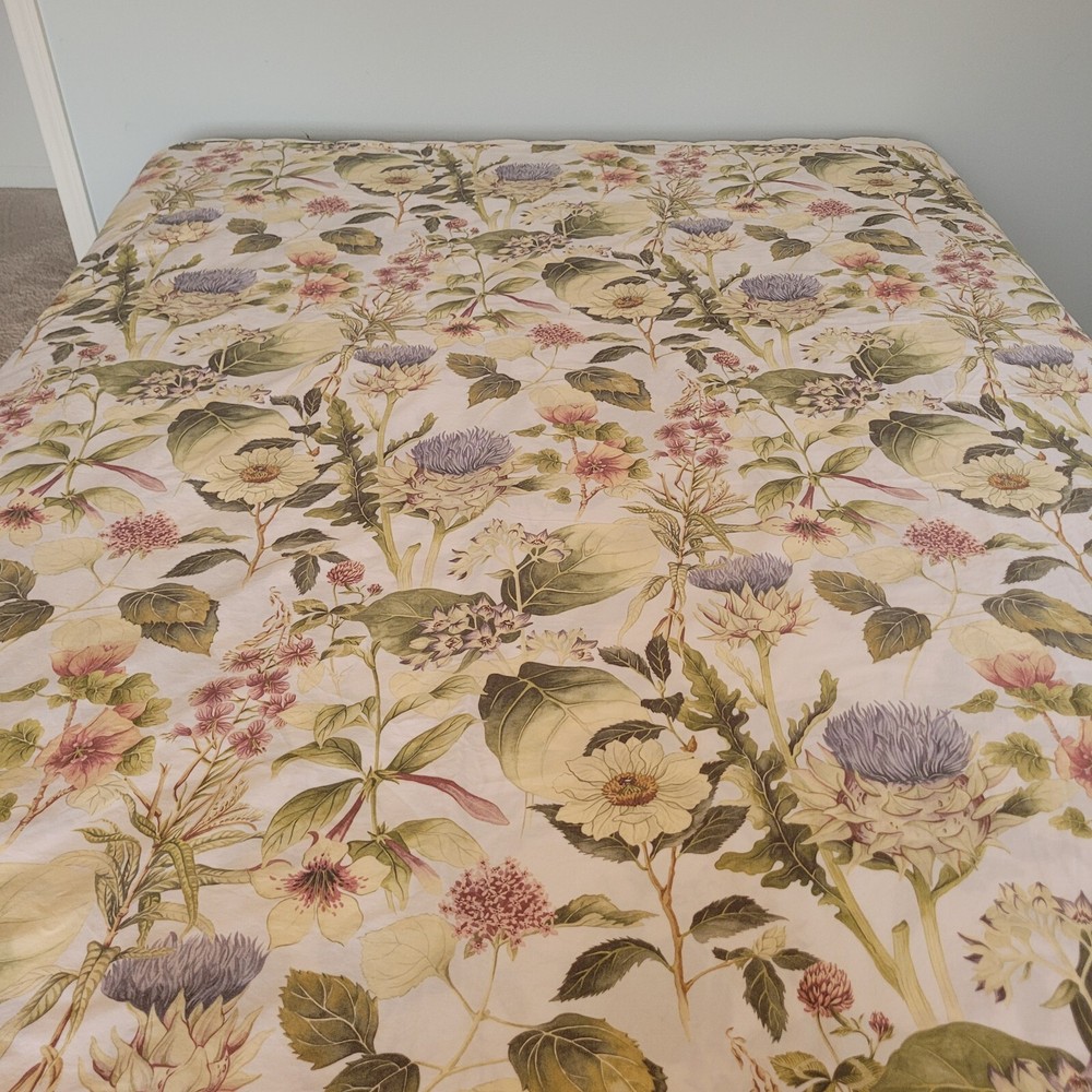 Pottery Barn Thistle Floral FULL /QUEEN Duvet Cover Botanical Thank you for your interest in this item. Please look at all photos as they are part of the description. If you have questions, please send a message. I am happy to provide additional information or photos. Pre-Owned Condition - Stain at botton end of the duvet. This item has been washed and will not match with newer items.
