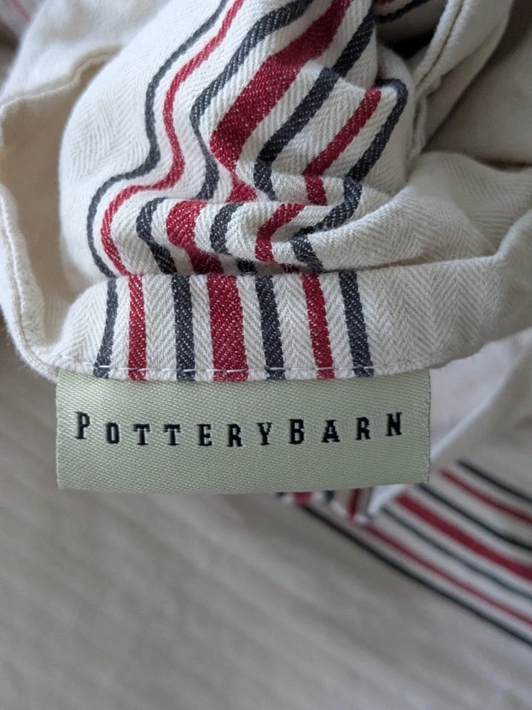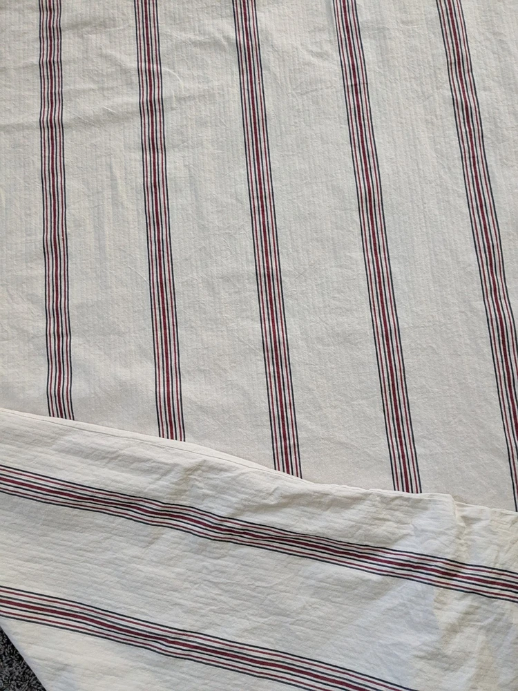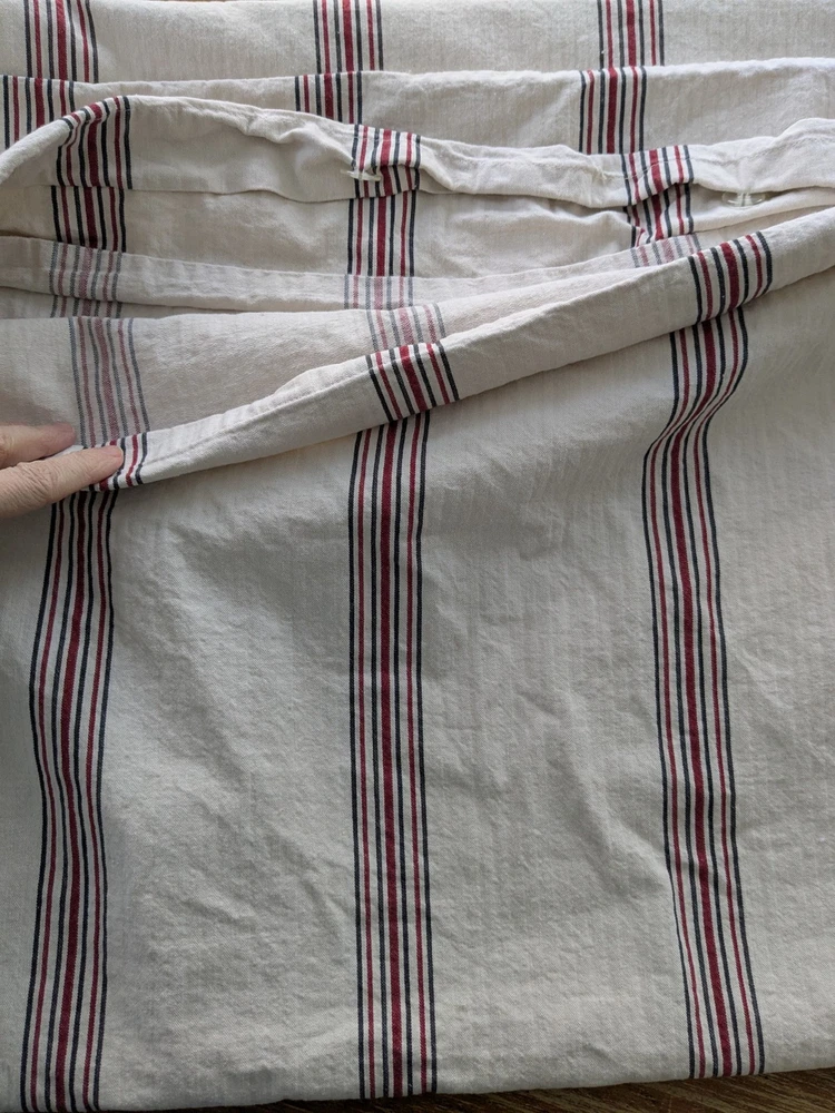 Excellent quality and condition, lightest wear, no stains or damage, classic ticking stripe that could work for classic nautical, cottage or French country decor. Button closure, inner ties. Freshly laundered and air dried, fresh and ready to use. 2 available, twin size. Shipped quickly and carefully. Please check my feedback and buy with confidence - and thanks for looking!