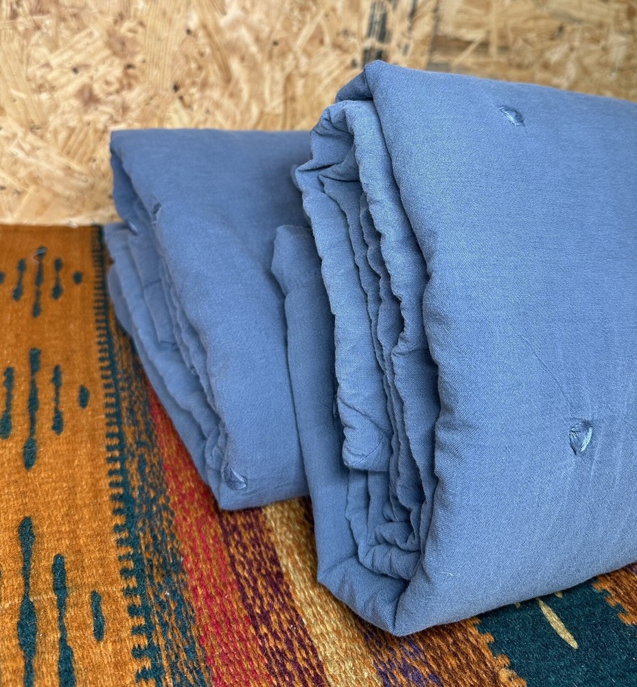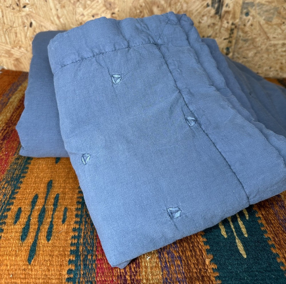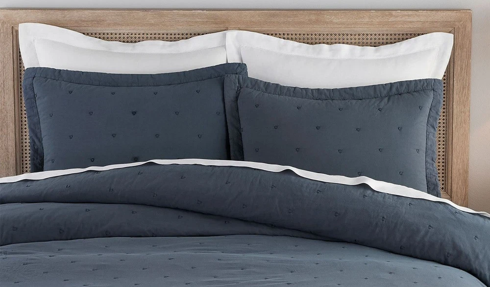 Love these Pottery Barn shams! The bluish-gray color is even prettier in person—soft, cozy, and stylish. They're in great preowned condition with no flaws, just some minor tag wear. The envelope closure makes them easy to use, and the triangle stitching adds a nice texture. Perfect upgrade for my bedroom!