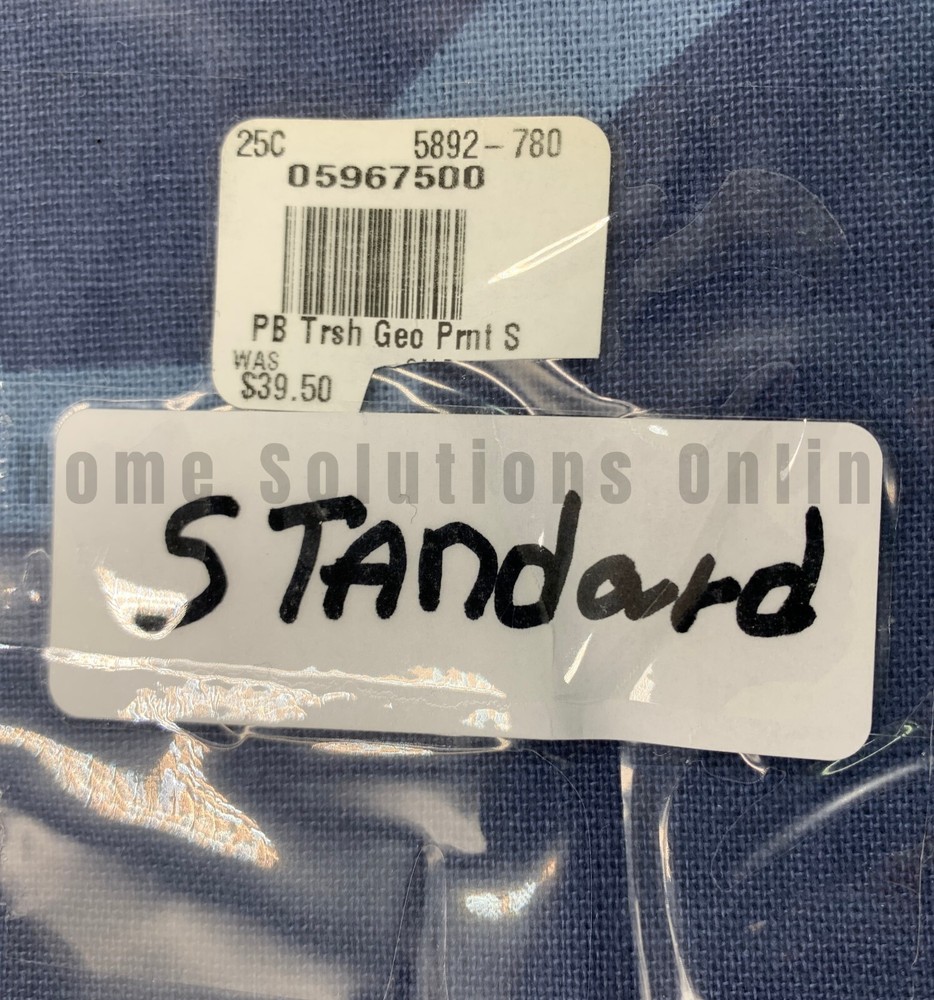 Pottery Barn Trisha Geo Patterned Cotton Sham Item is brand new Auction includes: 1 sham PRODUCT DETAILS CONSTRUCTION: Woven of linen-cotton blend. Duvet cover is finished with interior ties and a button closure to keep the duvet in place; sham features an envelope closure. Duvet cover and sham reverse to self. Duvet cover, shams, and insert sold separately. Imported. CARE: Machine wash in cold water; gentle cycle. Use only non-chlorine bleach, if needed. Tumble dry on low heat. DIMENSIONS: Twin Duvet Cover: 86" l x 68" w Full/Queen Duvet Cover: 88" l x 92" w King/Cal. King Duvet Cover: 92" l x 108" w Standard Sham: 20" h x 26" w Euro Sham: 26" sq King Sham : 20" h x 36" w Flange: 2" w