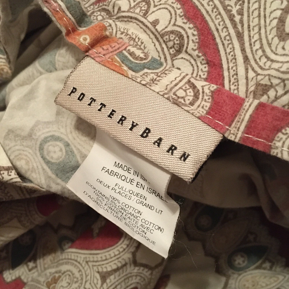 Pottery Barn Valencia full/queen duvet cover. 100% cotton. Lovely medallion and paisley print. Gently used. No holes or stains. This will ship with USPS, UPS, or FedEx, depending on your location....