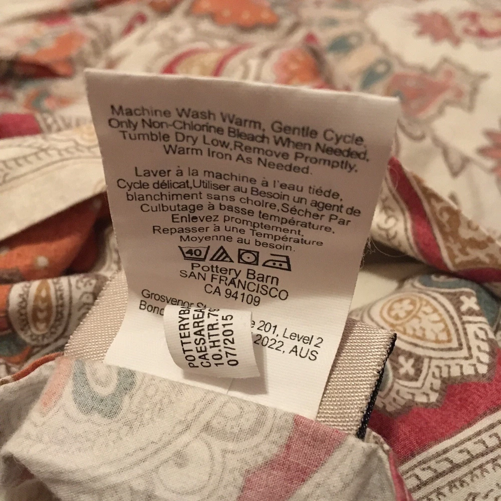 Pottery Barn Valencia full/queen duvet cover. 100% cotton. Lovely medallion and paisley print. Gently used. No holes or stains. This will ship with USPS, UPS, or FedEx, depending on your location.