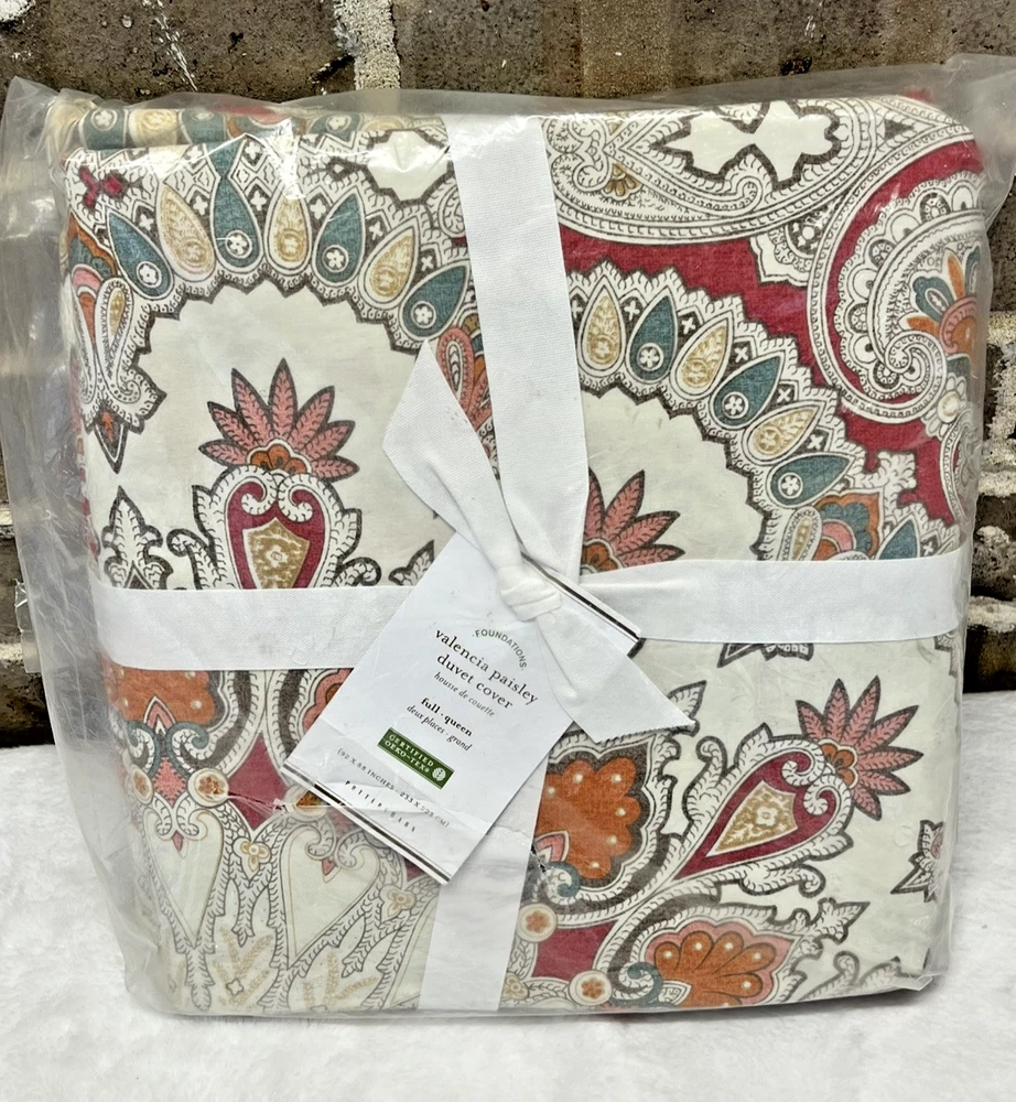 Brand New In The Package You get 1 Duvet Cover Only. (NO SHAMS) Made of 100% organic cotton Bohemian Design and Beautiful Organic cotton is grown without the use of toxic and persistent pesticides and synthetic fertilizers Duvet features a button closure and interior ties 200 thread count Duvet and sham reverses to same. Imported. DIMENSIONS Duvet Cover Full / Queen: 88" long x 92" wide