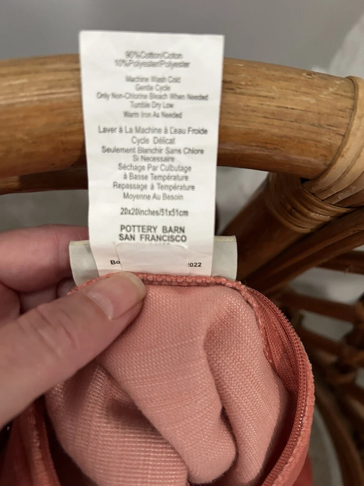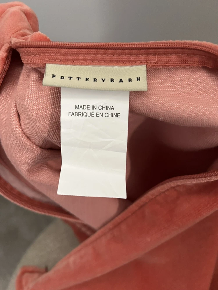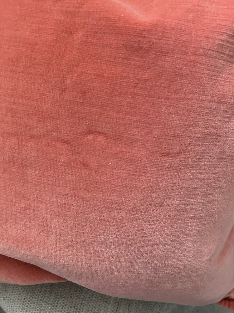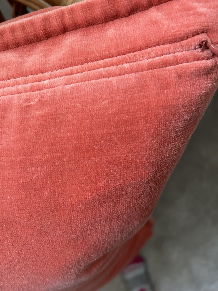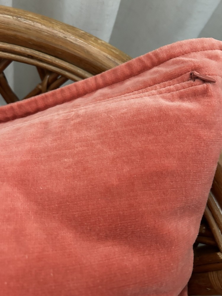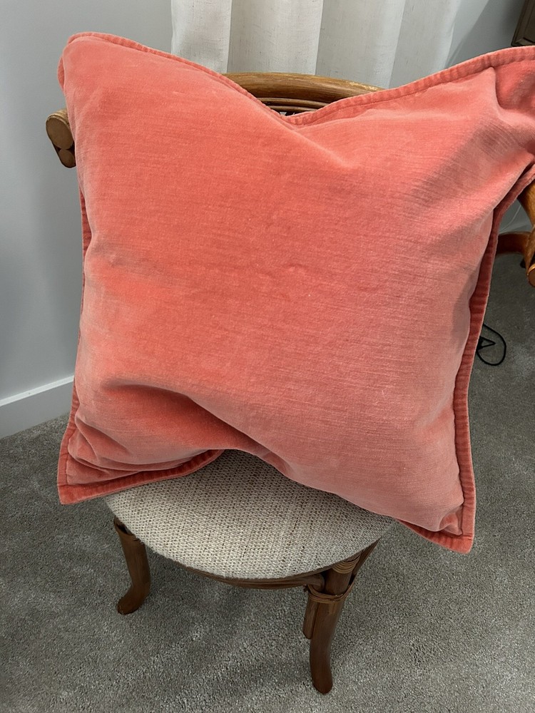 Pottery Barn lovely salmon colour velour pillow cover in very good condition. Zipper closure, velour on both sides. Measures 20” square. Please let me know if you have any questions. Thank you.