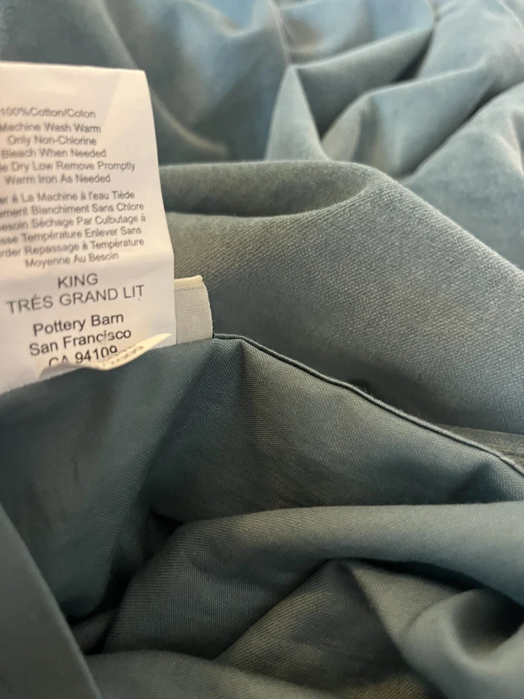 Pottery Barn duvet cover king size. Two standard size pillow cover. Teal green. Nice clean pre owned condition. No spots, stains no holes. Please email any questions.