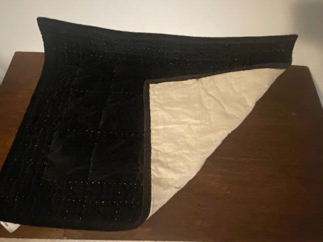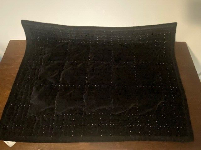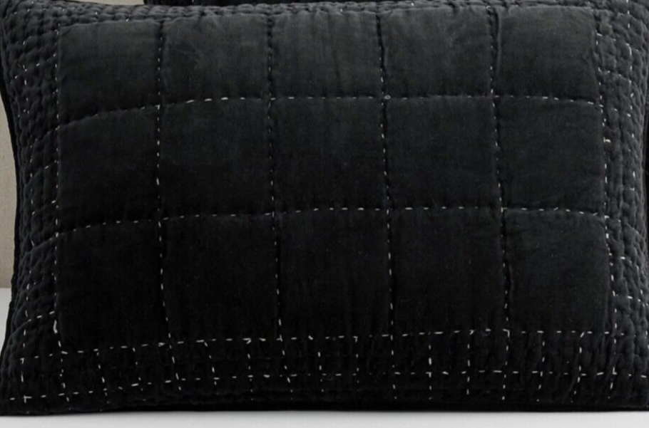 Pottery Barn Velvet Handcrafted Box Stitch Quilted Sham Standard Black Machine wash in warm water; normal cycle. Only non-chlorine bleach when needed. Tumble dry on low heat; remove promptly. Warm iro...
