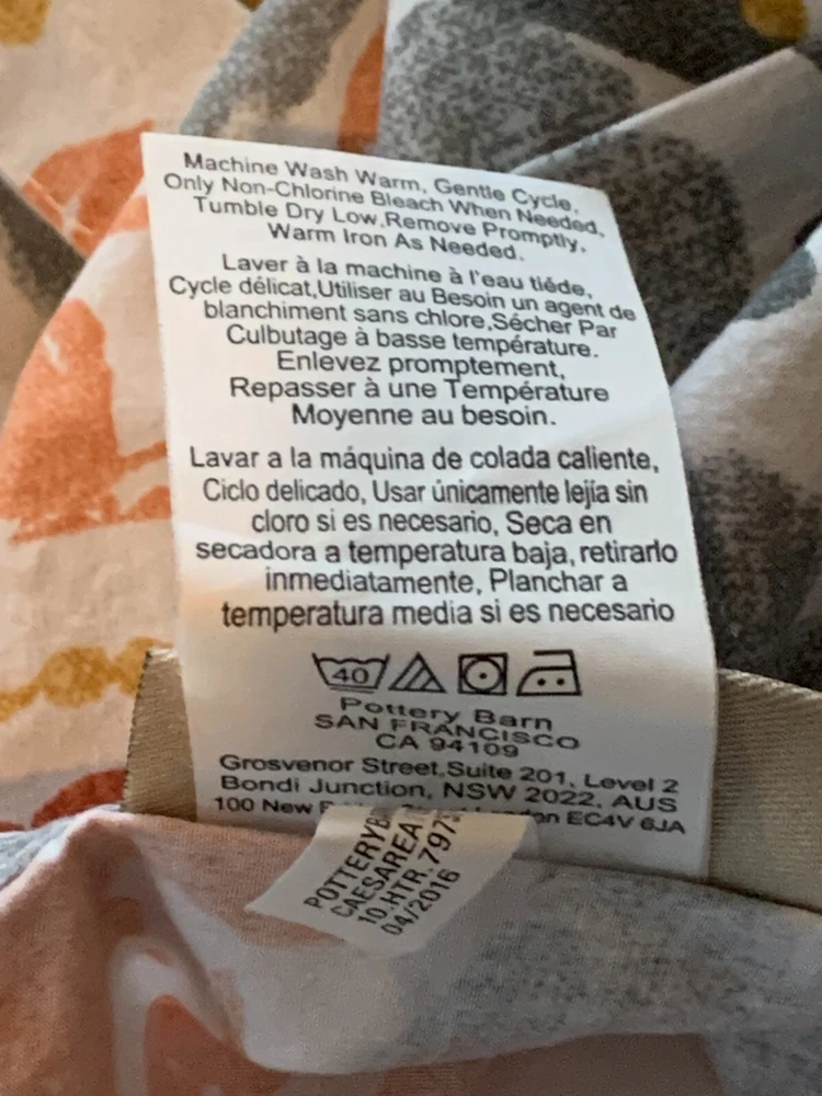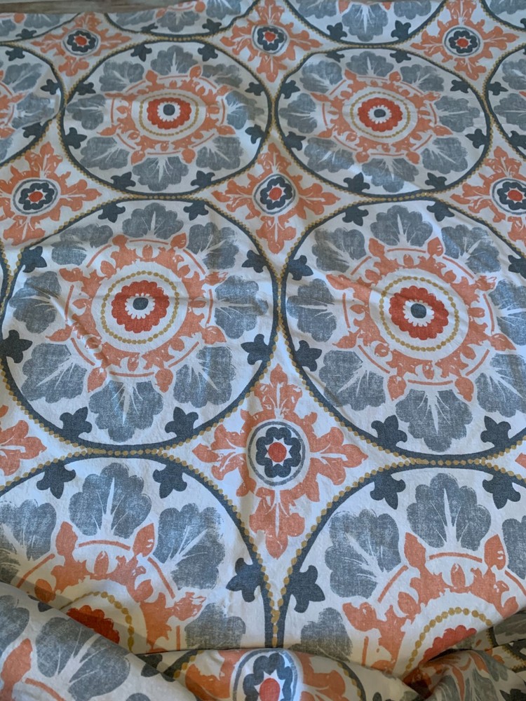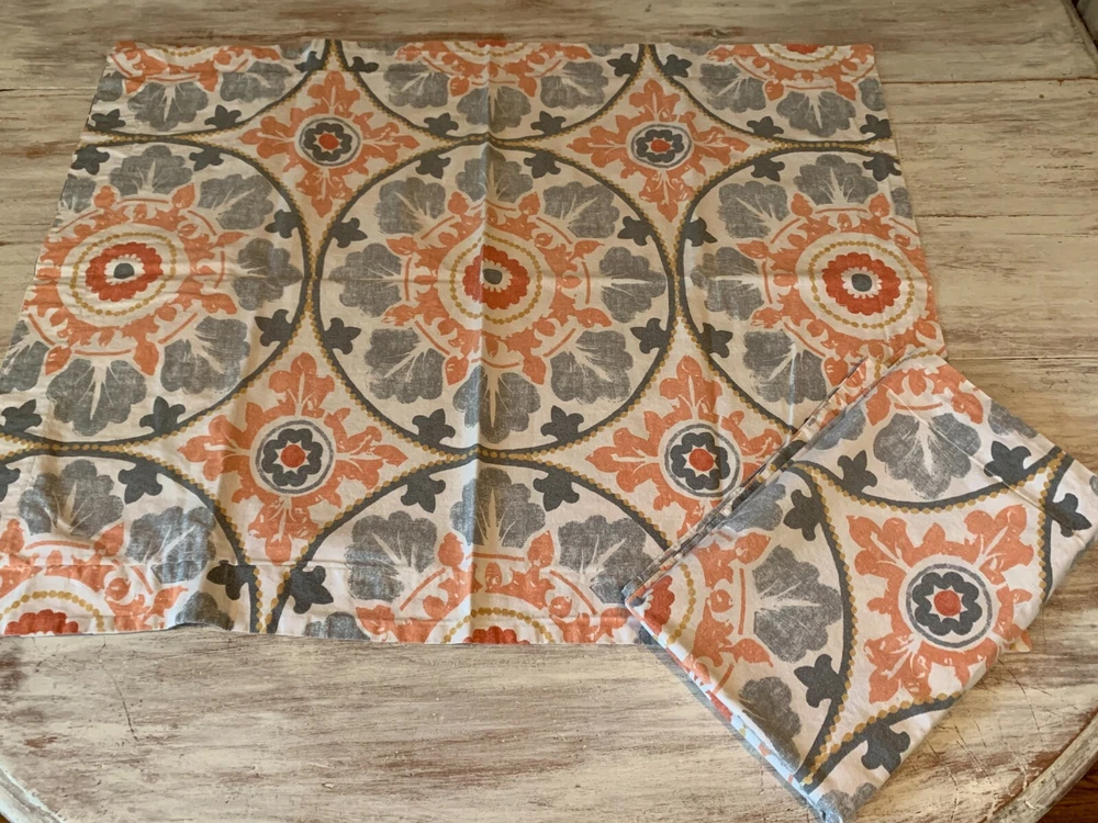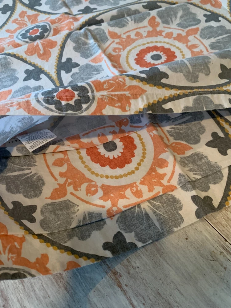 Pottery Barn Veronica Medallion Queen Duvet + 2 Standard Shams Orange Gray 3pc Condition is used but there are no rips, holes, tears or stains, all buttons on the duvet are in place and I see no fading. Enlarge and look at all photos for more details on condition and pattern. Please contact if additional information or photos are needed.