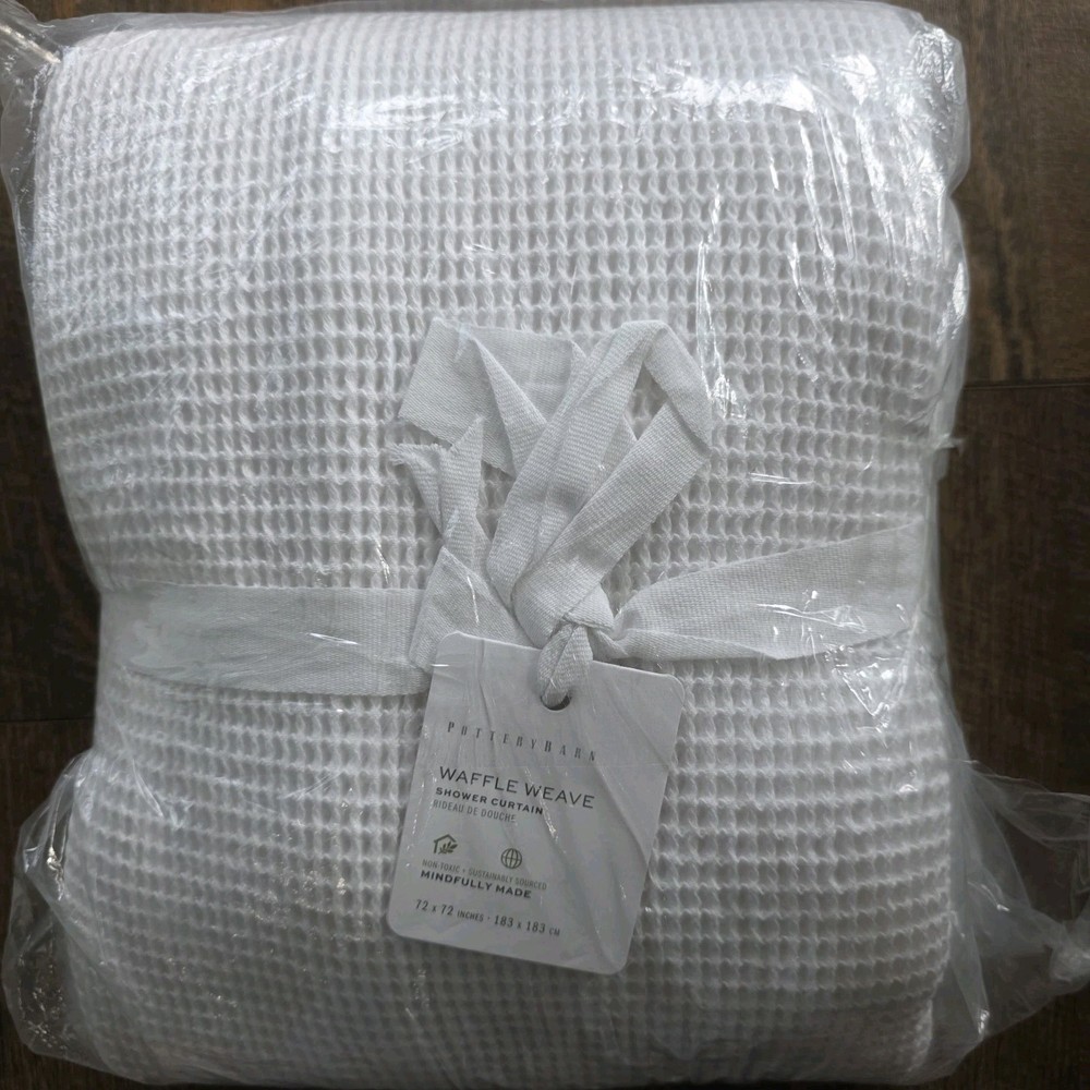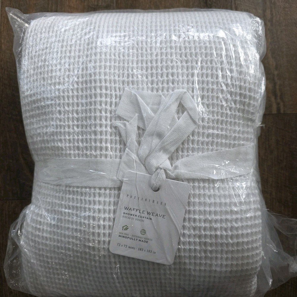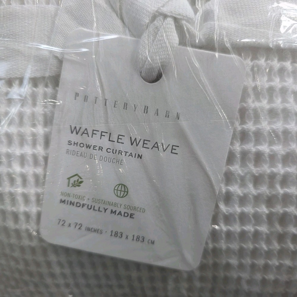The Pottery Barn Waffle Weave White Shower Curtain is a luxurious addition to any bathroom. Made of soft cotton, this 72" curtain is perfect for showers and adds a touch of elegance to your space. The waffle weave design adds texture and a subtle yet chic detail to your bathroom decor.