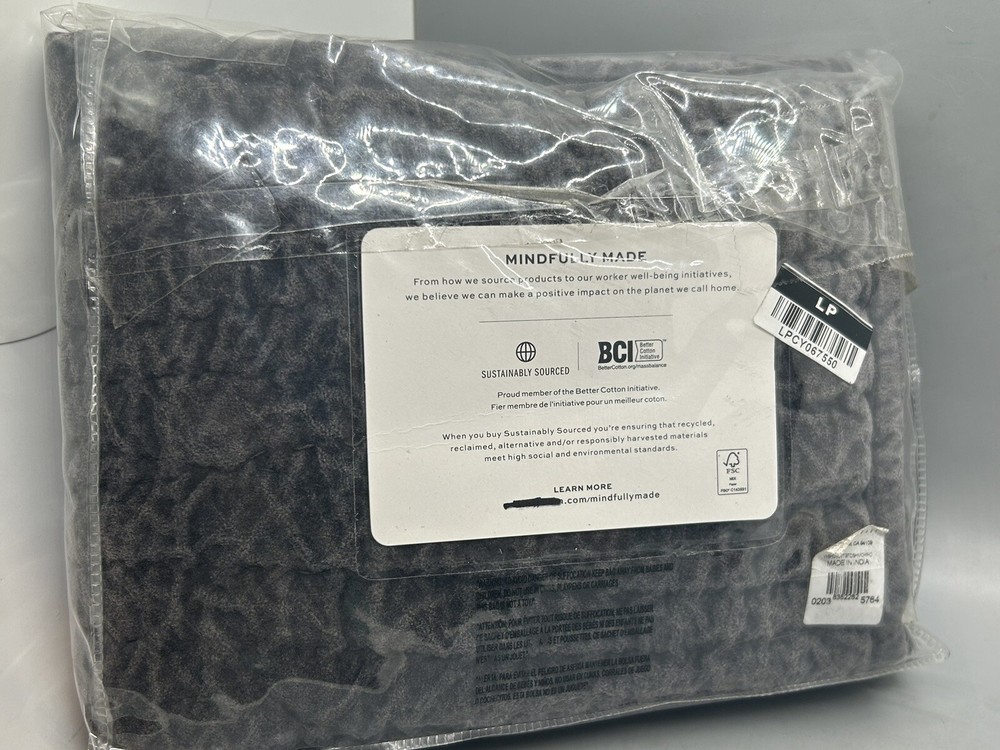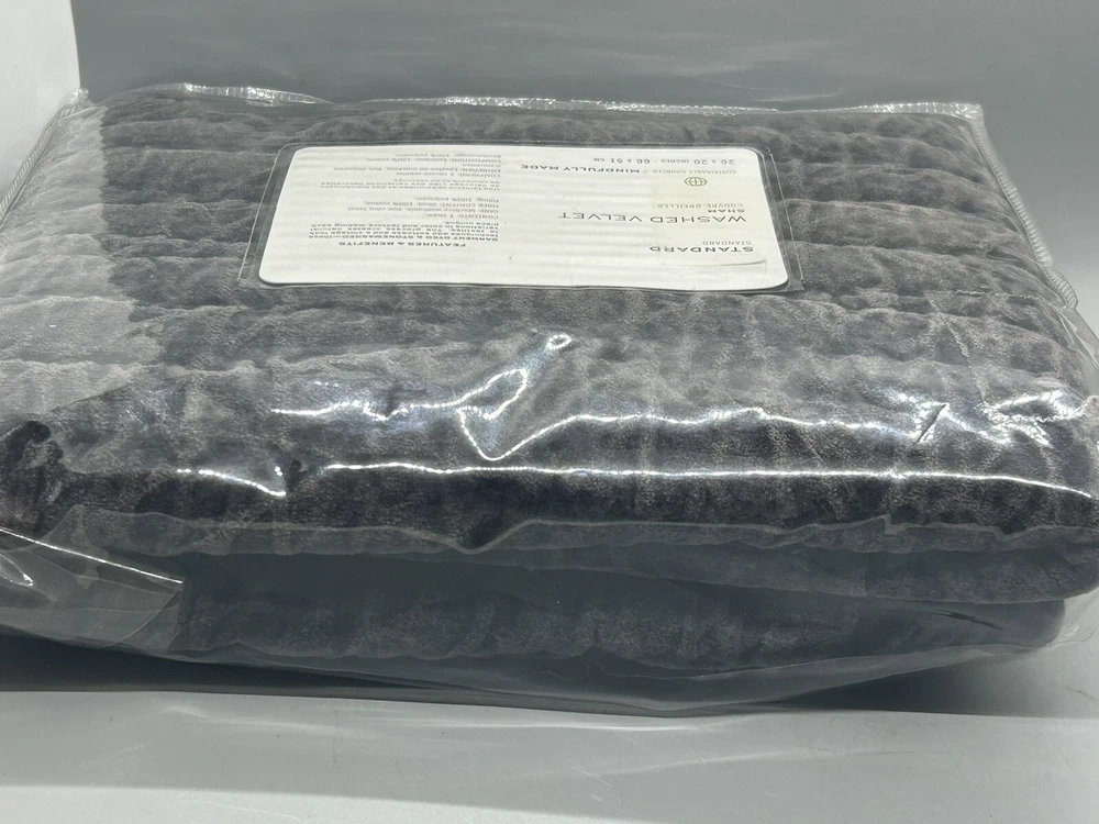 New, unused Pottery Barn Washed Velvet Handcrafted Quilted Pillow Sham, Standard size, Charcoal Gray. Measures 20” x 26”. The shell is 100% cotton, the filling is 100% polyester. Message me with any questions.