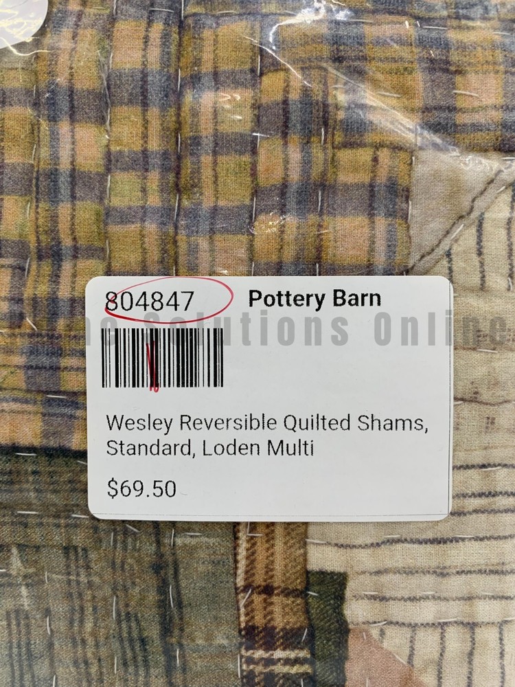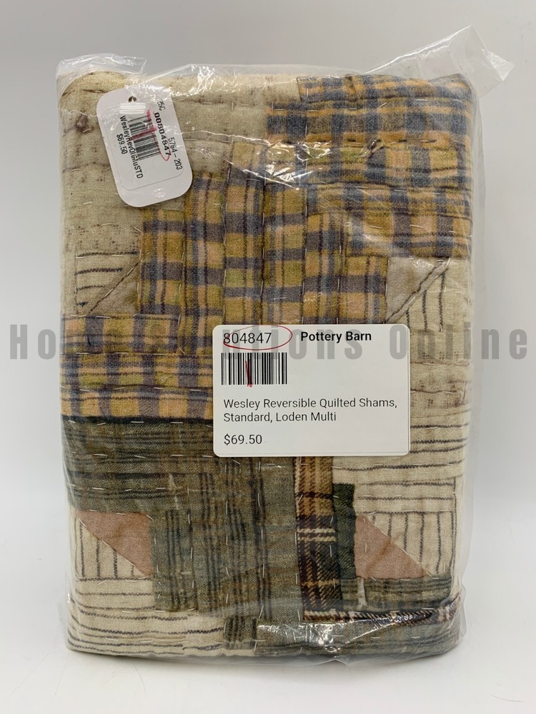 Pottery Barn Wesley Reversible Cotton Quilted Sham Item is brand new Auction includes: 1 sham PRODUCT DETAILS CONSTRUCTION: Made from 100% cotton; reverses to 100% cotton. Filled with 100% polyester. Reverses to a different pattern. Sham has a zipper closure. Shams and inserts are sold separately. Ethically handcrafted to the Nest Standards for homes and small workshops. By choosing our cotton products, you’re supporting our investment in Better Cotton’s mission. This product is sourced via mass balance and therefore may not contain Better Cotton. Imported. CARE: Machine wash in warm water; gentle cycle. Use only non-chlorine bleach, if needed. Tumble dry on a low temperature. Warm iron as needed. DIMENSIONS: Standard : 20" h x 26" w King: 20" h x 36" w Euro: 26" sq