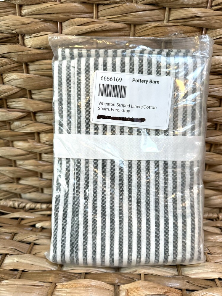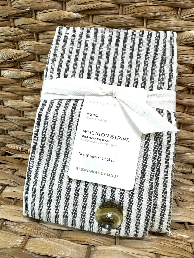 Pottery Barn Wheaton Striped Euro Sham Gray NEW 26” X 26” Linen Cotton Blend Fast shipping! It is our commitment to ship same day, or next day depending upon the time of day of the order. Stored in a smoke free and pet free environment. Clean & Fragrance free. Please note that photos are a part of description and the best indication of condition of an item. If you have ANY questions please ask them PRIOR to purchasing the item. Thank you for visiting my store!