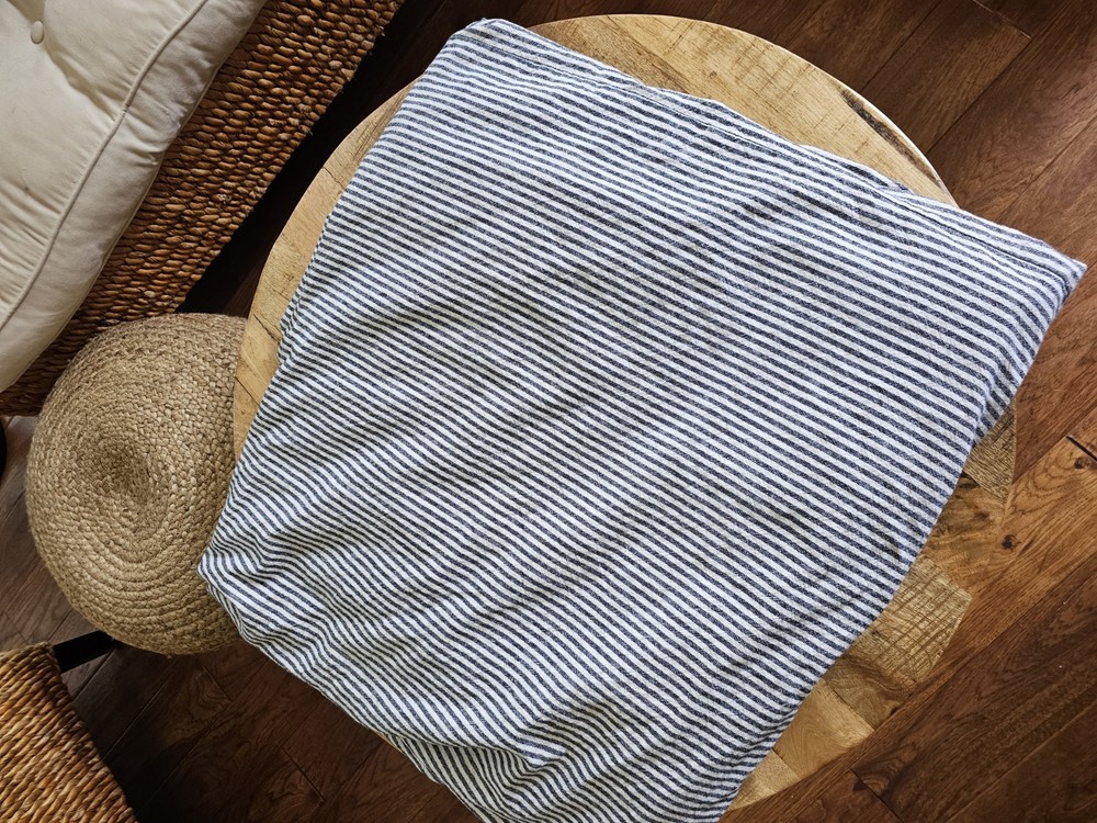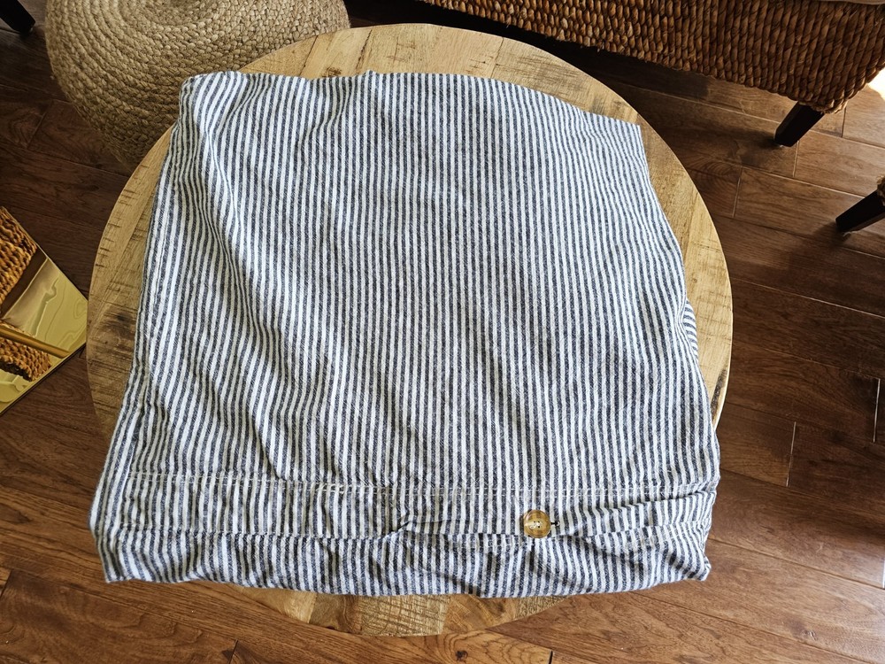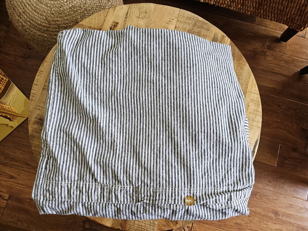 Beautiful duvet cover in excellent condition and comes from a clean and smoke free home. Colors is a white cream cover and dark gray in some light looks navy. Please see photos for details.