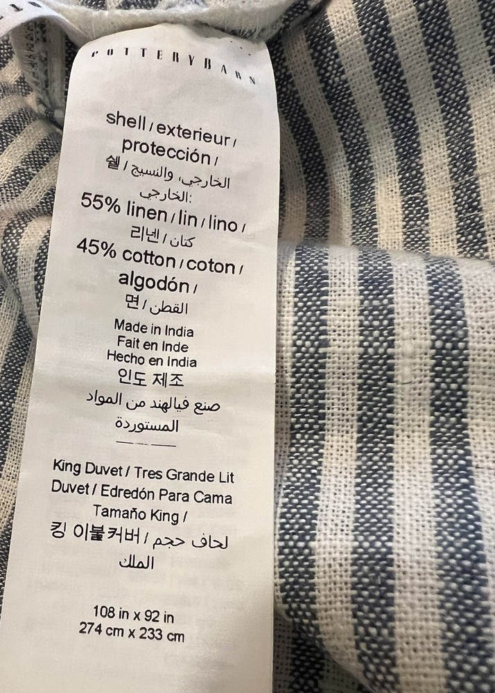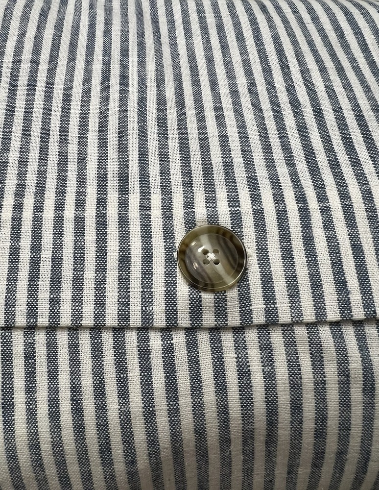 Elevate your bedroom with the Wheaton Striped Linen Cotton Duvet Cover from Pottery Barn. This king/california king-sized duvet cover features a timeless chambray blue color with a traditional striped pattern, adding a touch of luxury to your bedding. Crafted from a high-quality blend of linen and cotton, this duvet cover is known for its comfort, durability, and elegant style. The duvet cover includes a rectangular shape with a button closure for easy removal and is machine washable for convenient care. It's suitable for both teens and adults and can be used in any bedroom setting. The Wheaton Striped Duvet Cover is a perfect blend of style and functionality, offering a comfortable and inviting place to rest after a long day.
