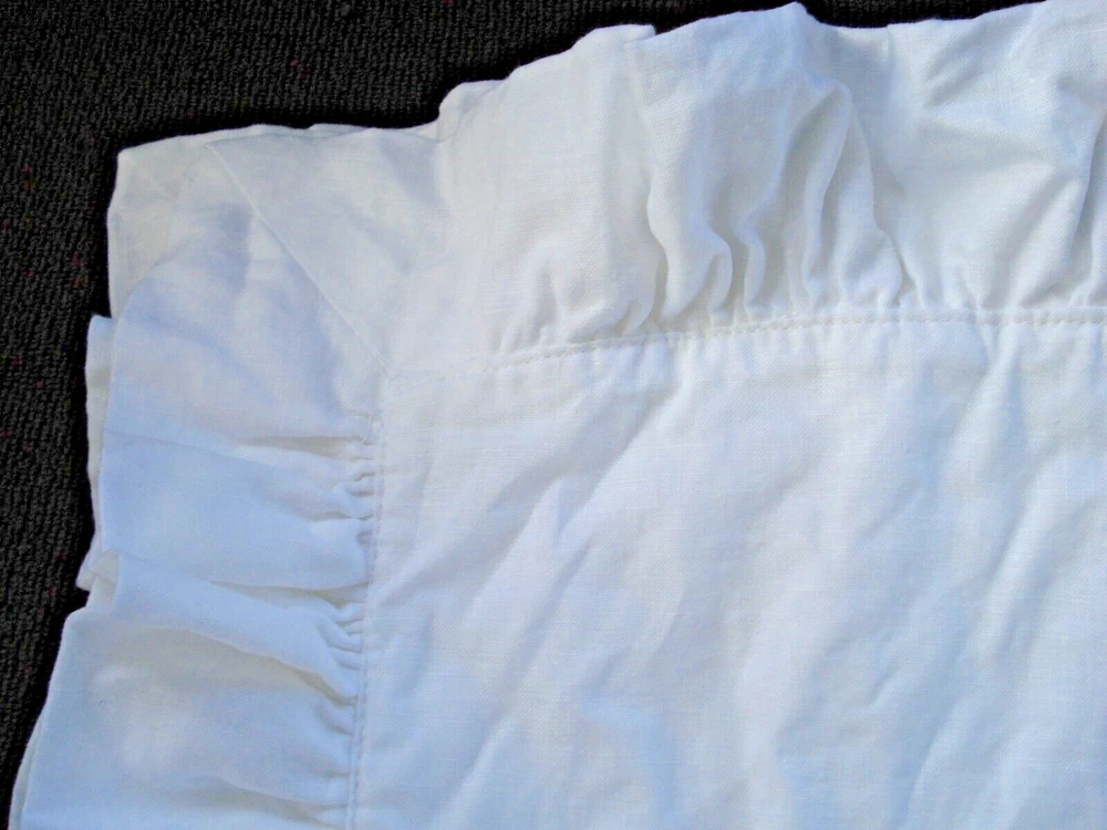 Pottery Barn White 100% Linen Ruffle Edge Standard Pillow Sham. NEW without tags. It needs to be ironed. All items come from a smoke free, pet friendly home. I try to describe each item accurately. If I should make a mistake, please know it was an honest mistake and not intentional. Before leaving negative feedback, contact me and I will work to correct it. If you are not satisfied with your purchase you can return the item and I will refund your purchase price. ****Payment is expected within three (3) days ****